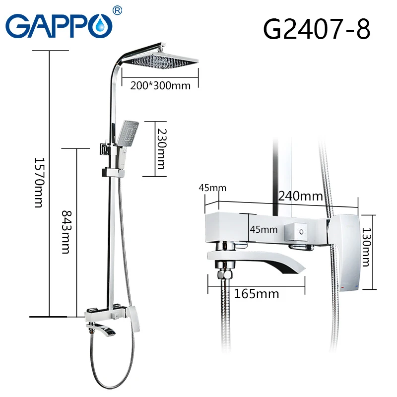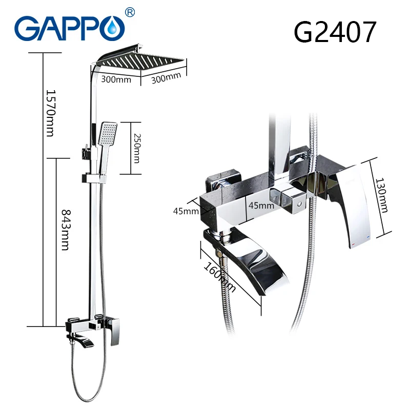 GAPPO ensemble de robinets de douche Cascade murale de baignoire robinet mitigeur de baignoire-douche pomme de mélangeur chromée salle de bain-douche ensemble G2407.