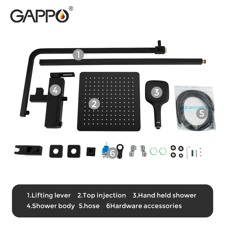 GAPPO noir robinet douche salle de bain eau chaude et froide mitigeur laiton robinets baignoire cascade système de douche noir robinet mitigeur.
