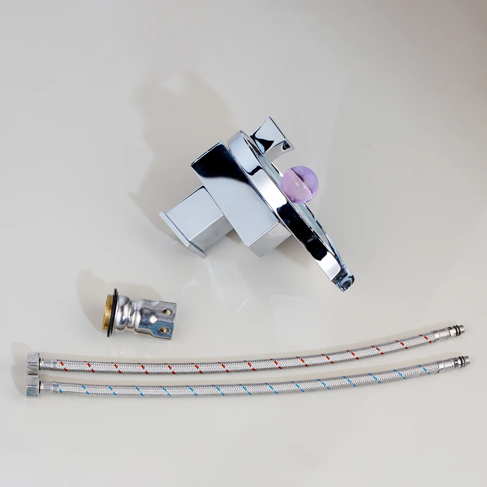 KEMAIDI robinet de salle de bains Led en laiton chromé robinet de lavabo de salle de bains robinet mitigeur de 3 couleurs à changement de couleur.