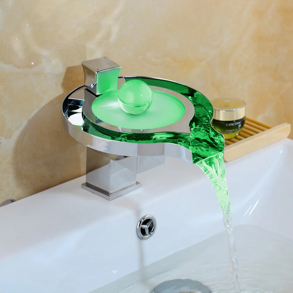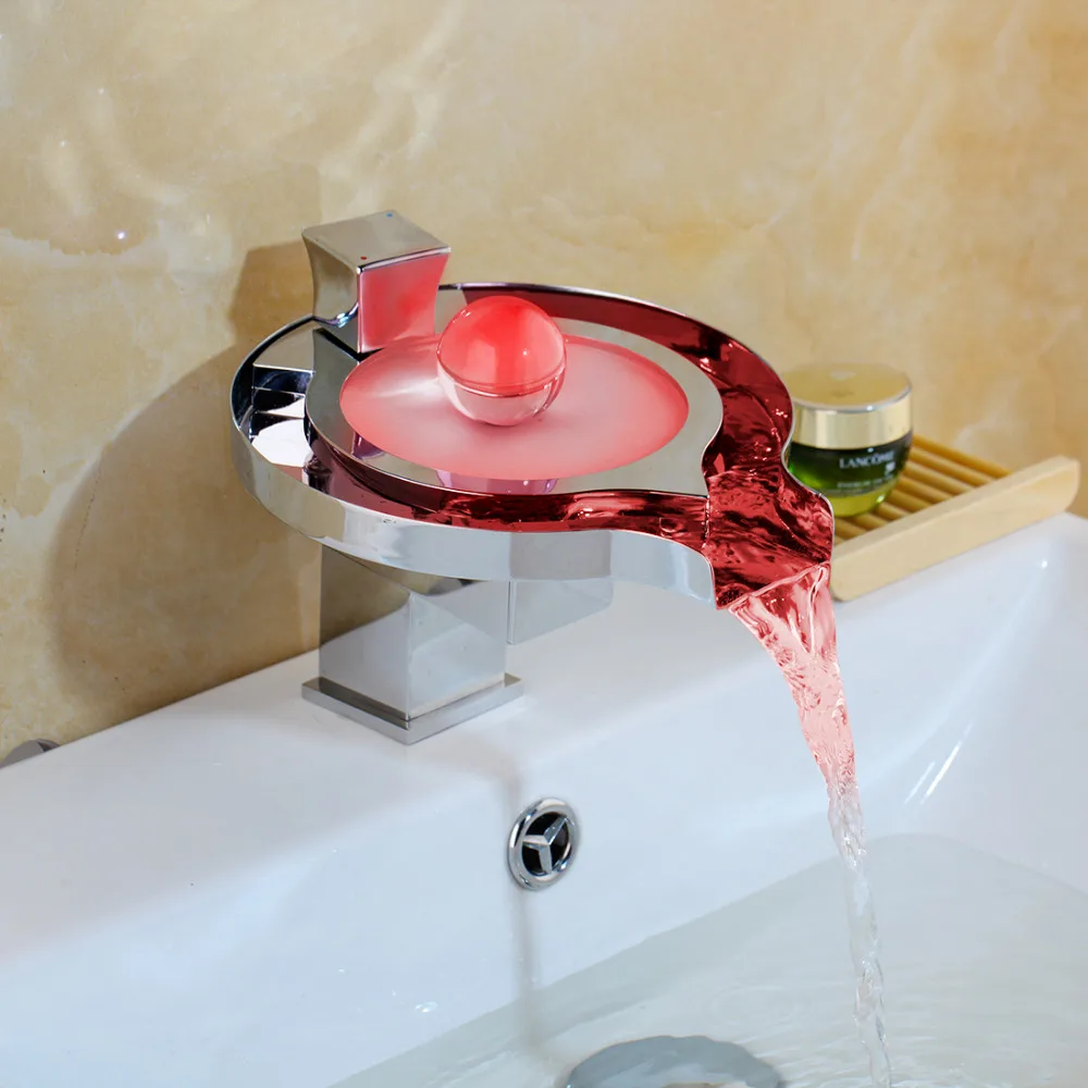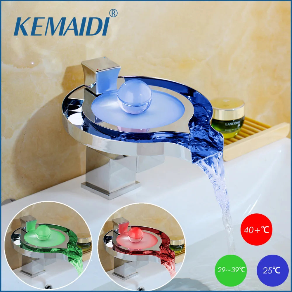 KEMAIDI robinet de salle de bains Led en laiton chromé robinet de lavabo de salle de bains robinet mitigeur de 3 couleurs à changement de couleur