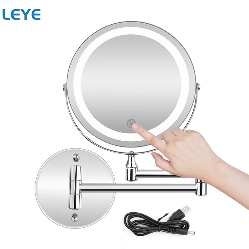 Miroir de salle de bains mural avec chargeur USB miroir de maquillage grossissant 1X/5X lumière LED miroir de maquillage