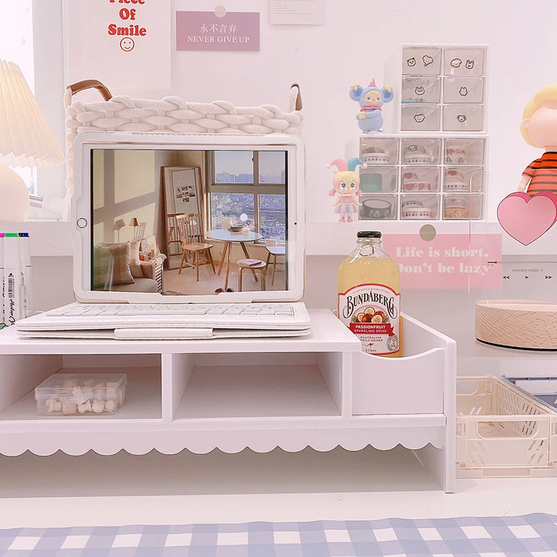 Nouveau mignon dessin animé bureau en bois armoire ordinateur étagère maison bureau fournitures bureau organisateur armoire propre étagères de rangement