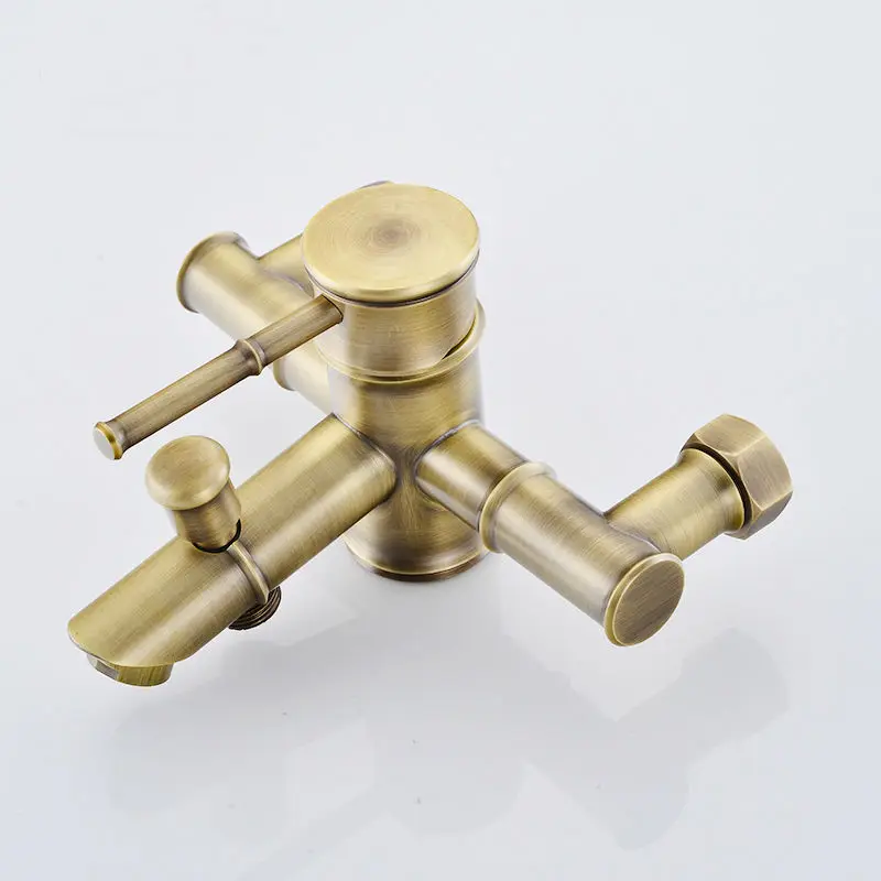 Robinet de baignoire mélangeur d'eau salle de bains en bambou ensemble de robinets de douche robinet de grue Bronze Antique fini avec douchette EL740