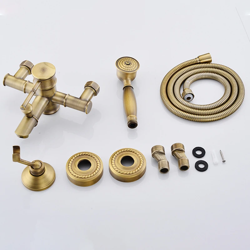 Robinet de baignoire mélangeur d'eau salle de bains en bambou ensemble de robinets de douche robinet de grue Bronze Antique fini avec douchette EL740.