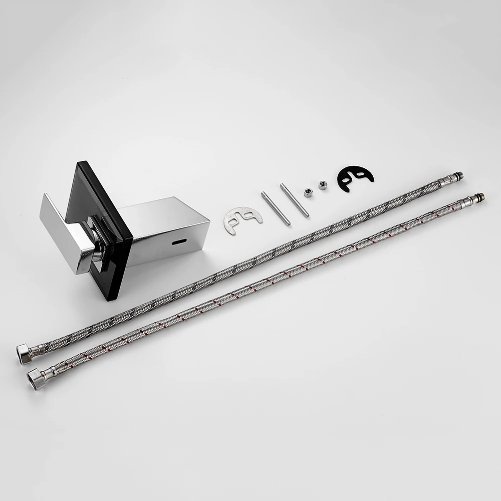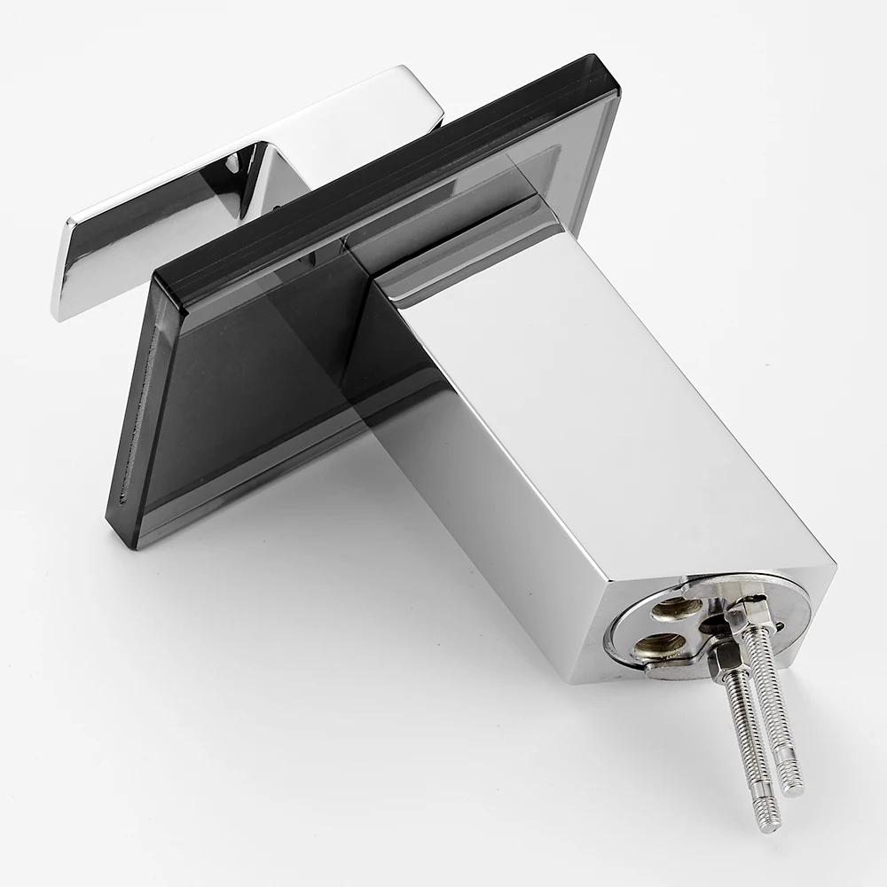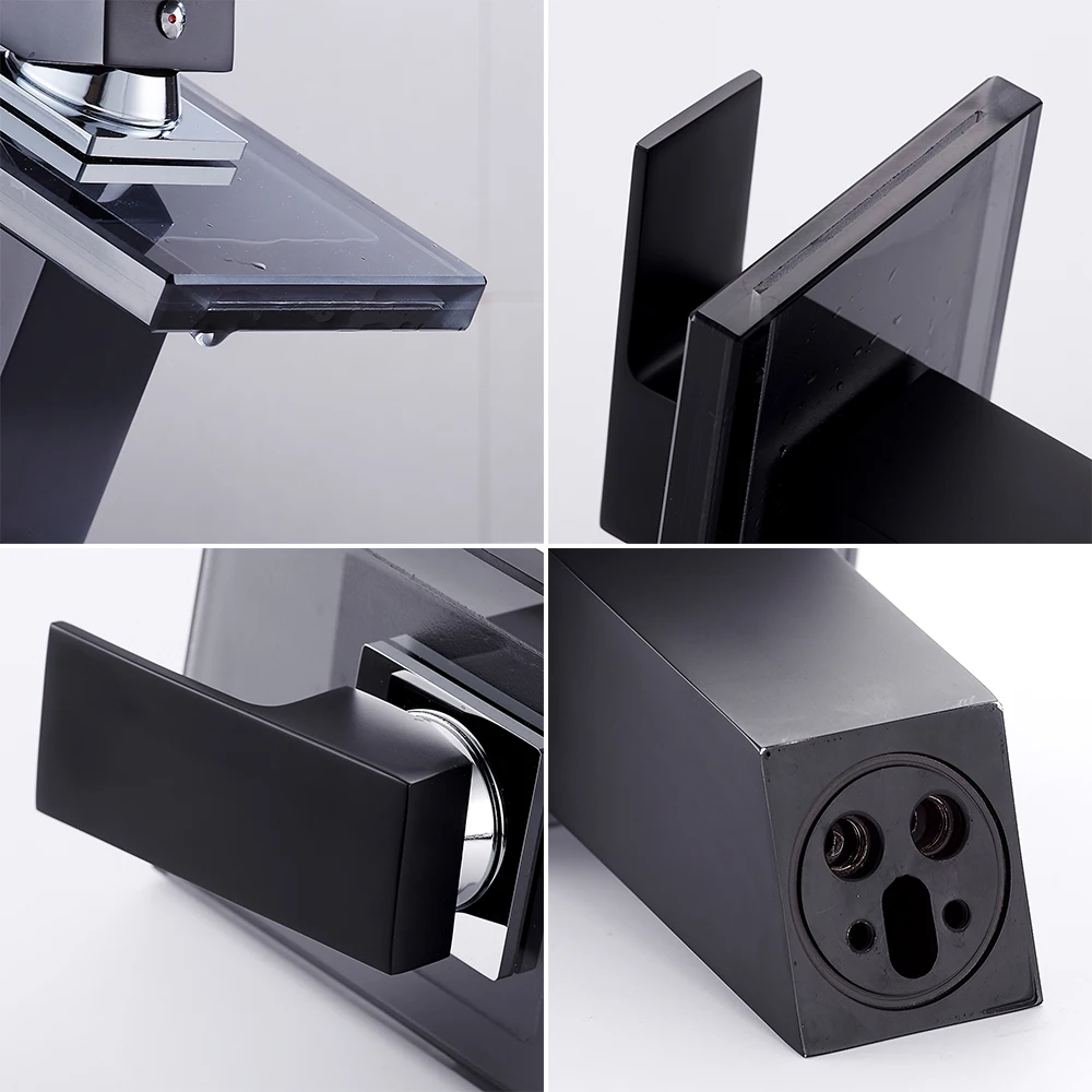 Robinet de salle de bains en verre cascade robinet de salle de bains en verre noir monté sur le pont de lavabo en laiton massif lavabo mitigeur robinet.