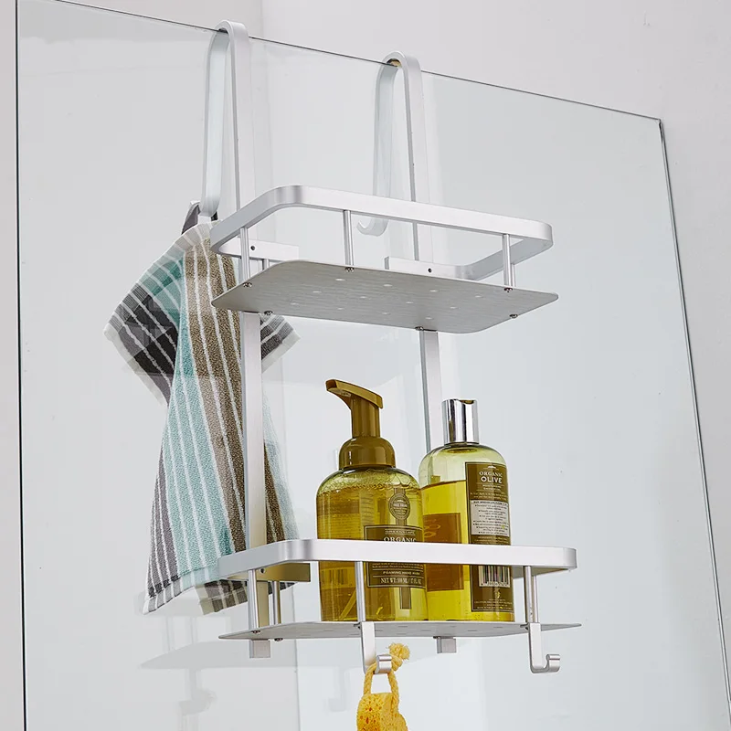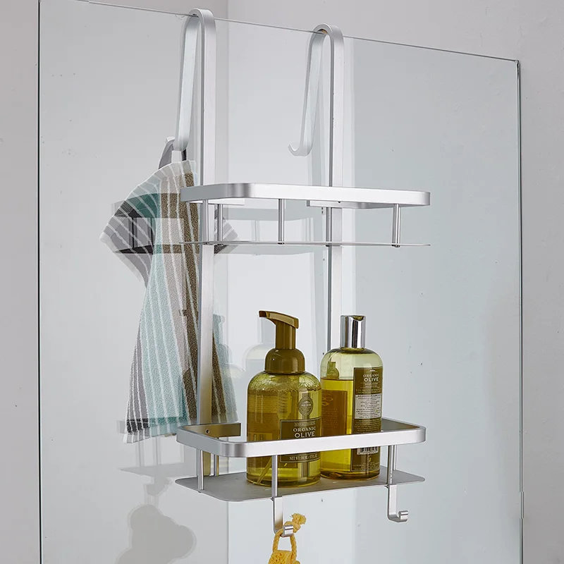 Salle de bain panier d'angle en aluminium argenté contemporain panier d'angle à 2 couches support cosmétique brossé accessoires de salle de bains G66.