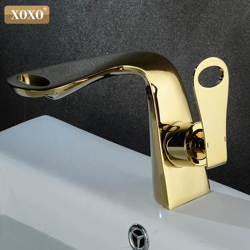 XOXO robinet mitigeur noir salle de bains chaude et froide robinet de lavabo moderne à une poignée mitigeur d'évier monté sur le pont grue de lavabo 21095A-HG