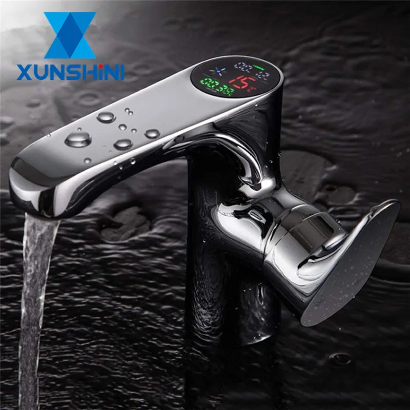 XUNSHINI-robinet de lavabo numérique salle de bains Led eau robinet de lavabo en laiton chromé affichage de température.