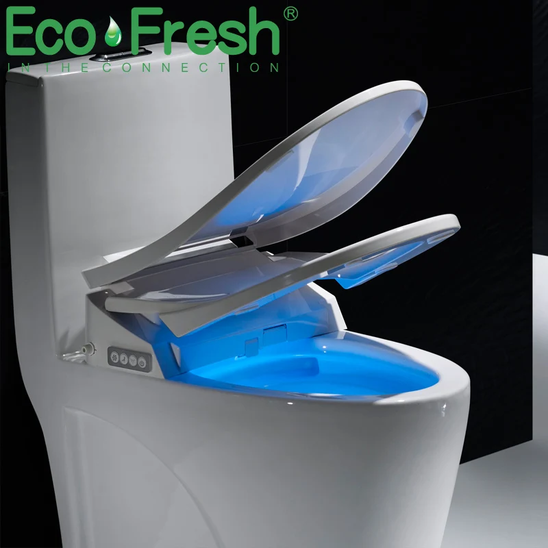 Ecofred-housse de siège de toilette intelligent bidet électronique sec chauffant or lumière led.