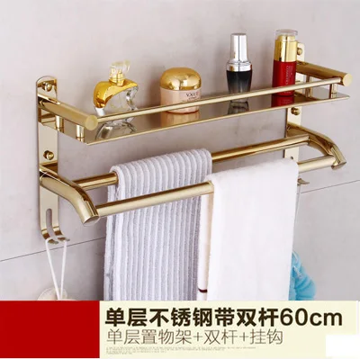 Étagère de salle de bain en or porte-serviettes 2 couches support de rangement accessoire de salle de bain étagère d'angle.