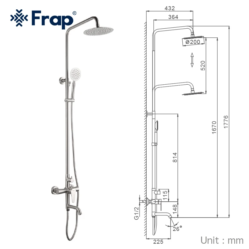 Frap ensemble de robinets de douche en acier inoxydable mitigeurs de douche pluie baignoire douche mitigeur d'eau chaude et froide F2448
