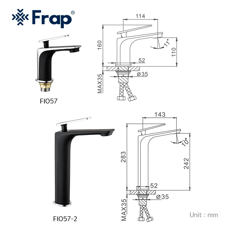 Frap robinet de lavabo mitigeur de salle de bains en laiton mitigeur de lavabo monté sur le pont F1057