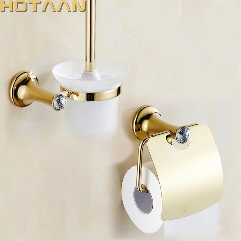 HOTAAN nouveau livraison gratuite ensemble d'accessoires de salle de bain en acier inoxydable porte-brosse de toilette porte-papier ensembles de salle de bain couleur or.
