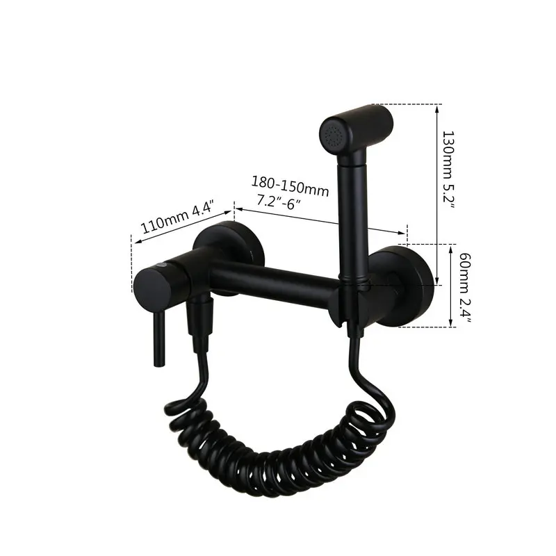 JIENI robinet de Bidet mural de salle de bains douche robinet de toilettes douchette à main robinet de baignoire mélangeur câbles Helix noir mat.