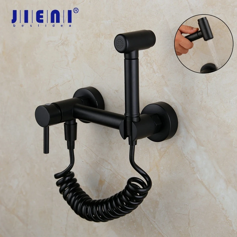 JIENI robinet de Bidet mural de salle de bains douche robinet de toilettes douchette à main robinet de baignoire mélangeur câbles Helix noir mat