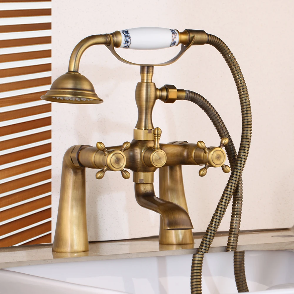 KEMAIDI-ensemble de robinets de douche en laiton Antique pour baignoire doré robinet mitigeur à double bouton robinet de bain-douche pivotant douche