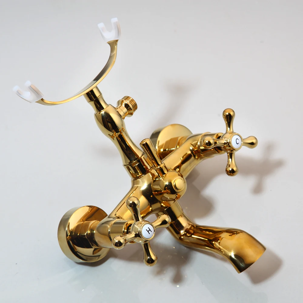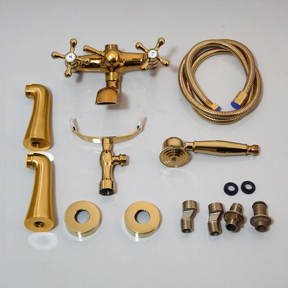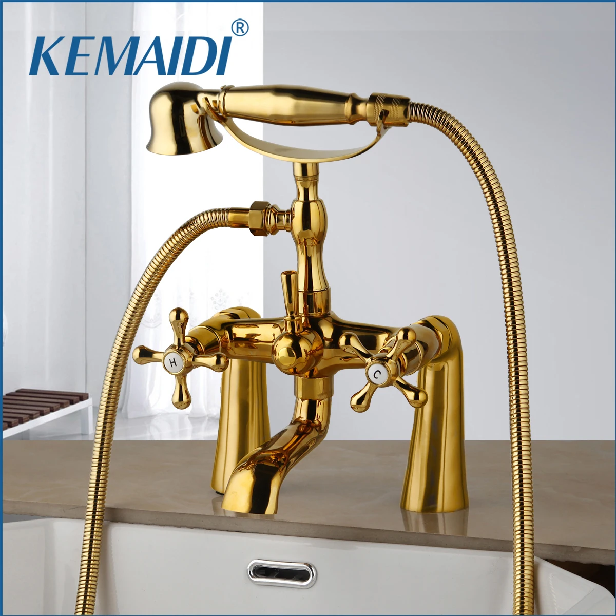 KEMAIDI-ensemble de robinets de douche en laiton Antique pour baignoire doré robinet mitigeur à double bouton robinet de bain-douche pivotant douche.