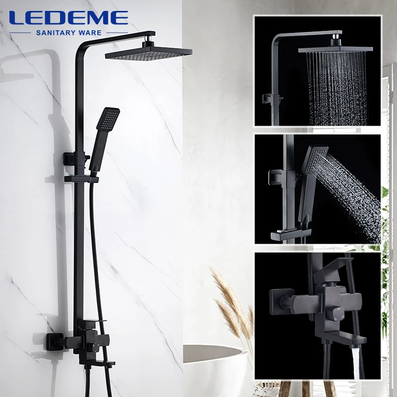 LEDEME mélangeur de douche à effet pluie ensemble de robinets de salle de bains et douche mitigeur de douche mitigeur mural d'eau chaude et froide avec main L72433B