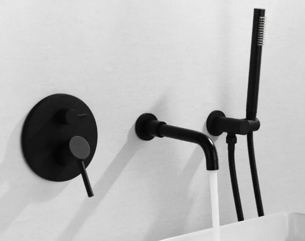 Mitigeur de lavabo de salle de bains mural mitigeur de baignoire à Long bec pomme de douche à main robinet de baignoire et de douche BF998