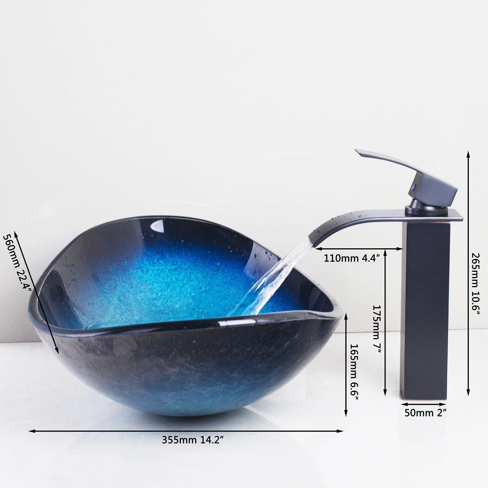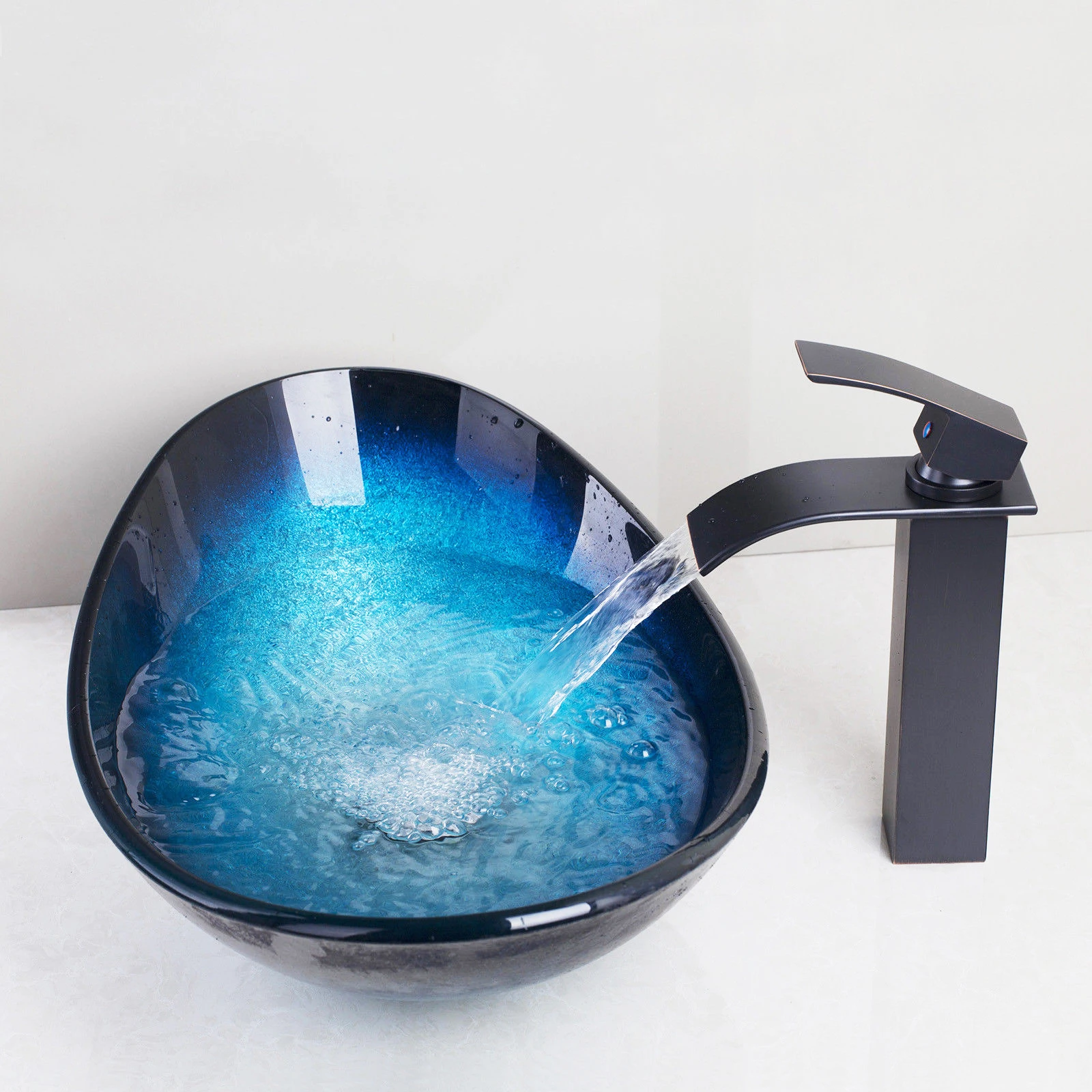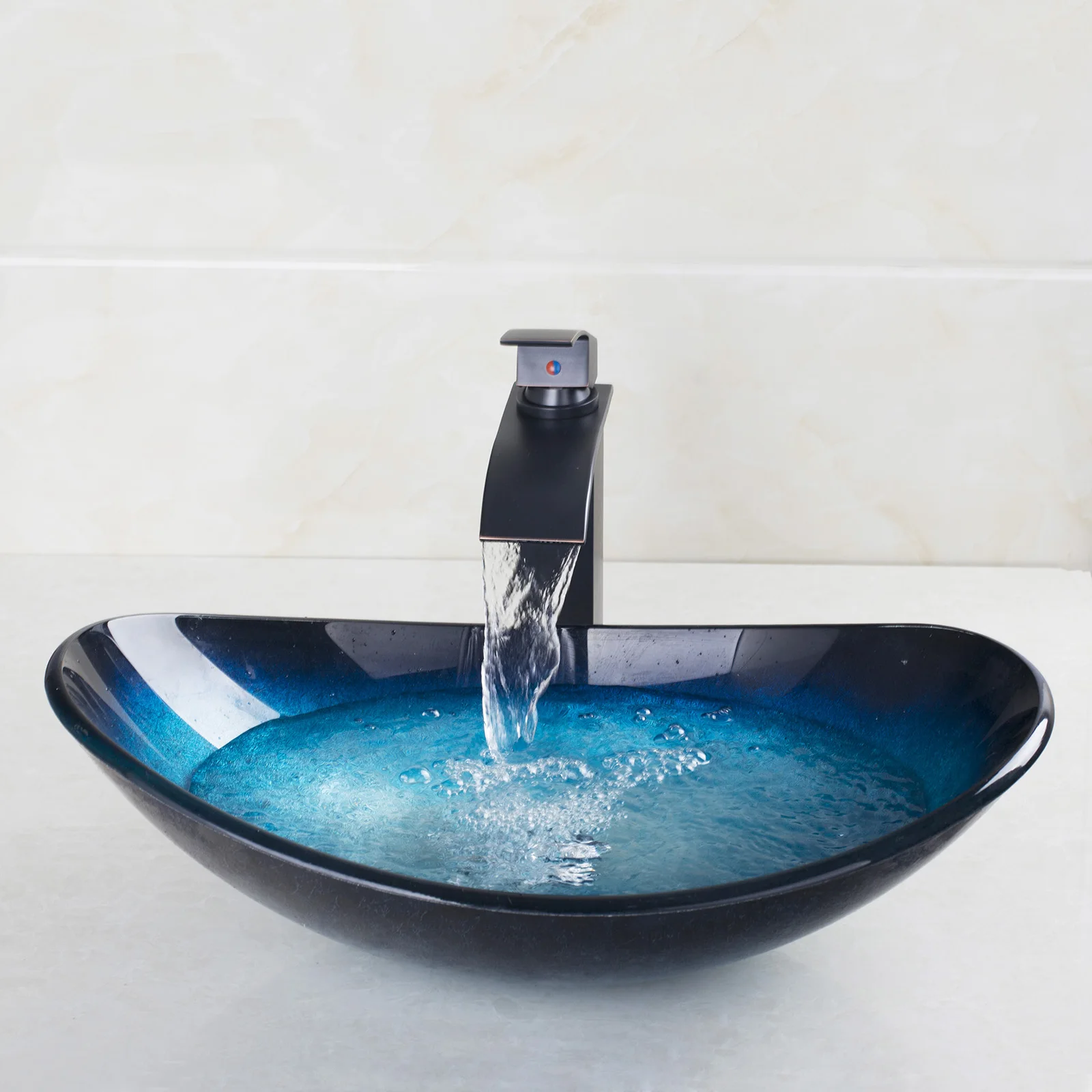 Monite bol de lavabo de salle de bains livraison gratuite rapide unité de salle de bains bol de lavabo avec ORB robinet mitigeur robinet de lavabo en verre bleu.