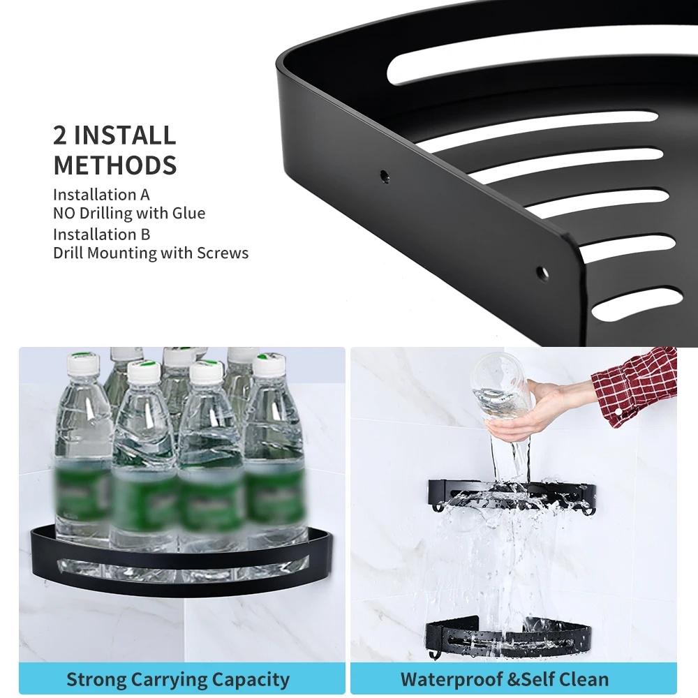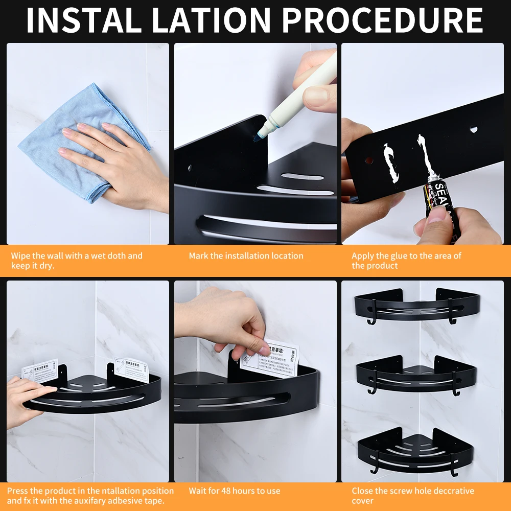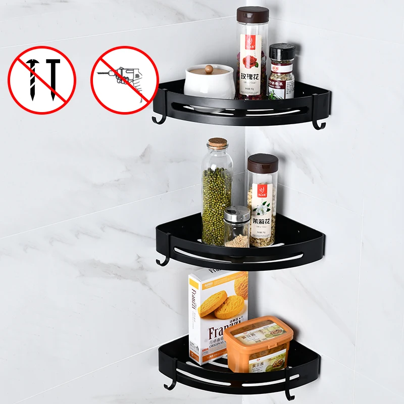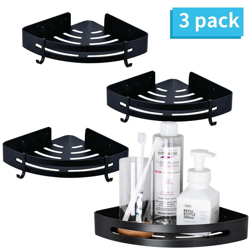 Paquet de 3 étagères de salle de bain étagère de rangement sans perçage mural coin douche Caddy étagère avec 6 crochets amovibles pour salle de bain