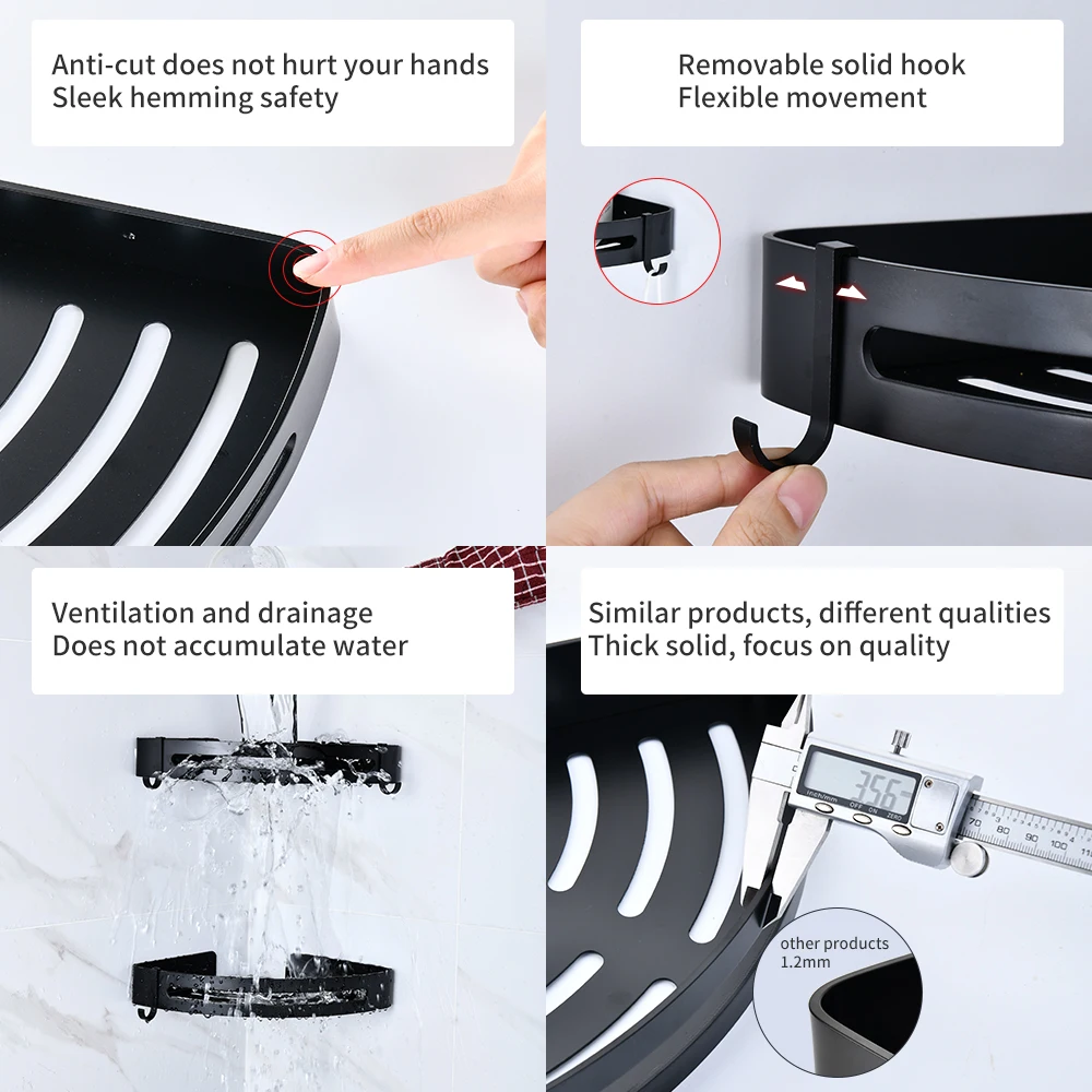 Paquet de 3 étagères de salle de bain étagère de rangement sans perçage mural coin douche Caddy étagère avec 6 crochets amovibles pour salle de bain.