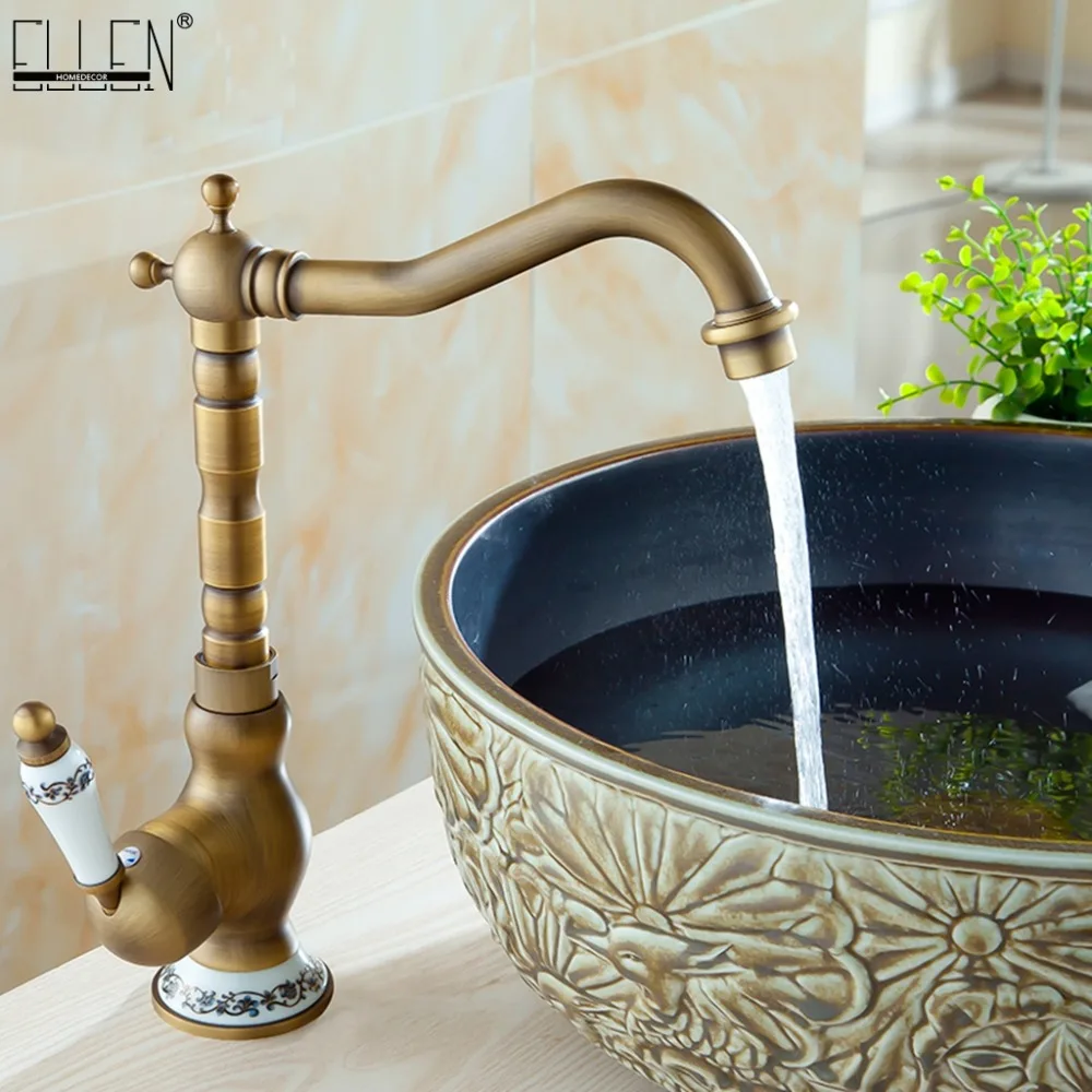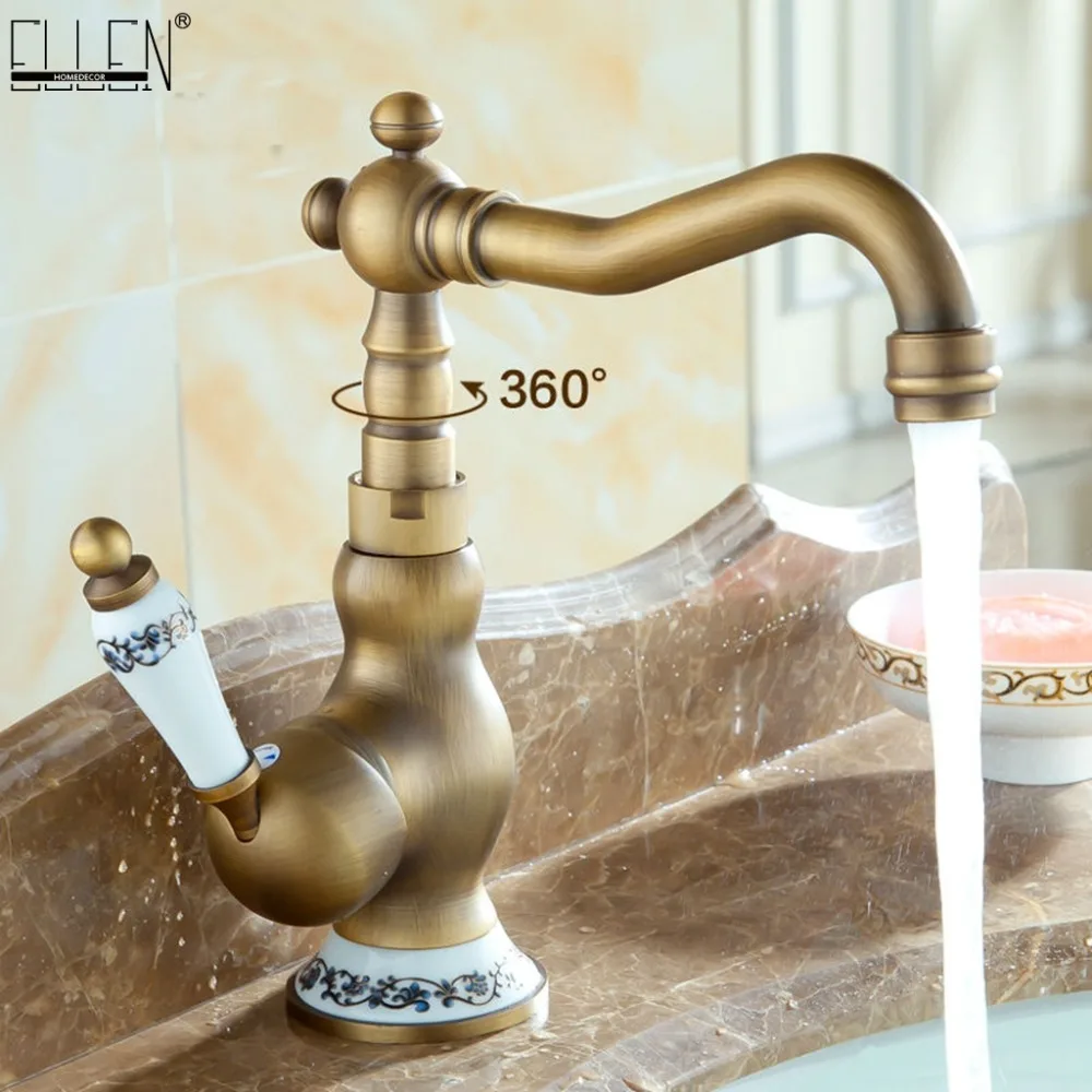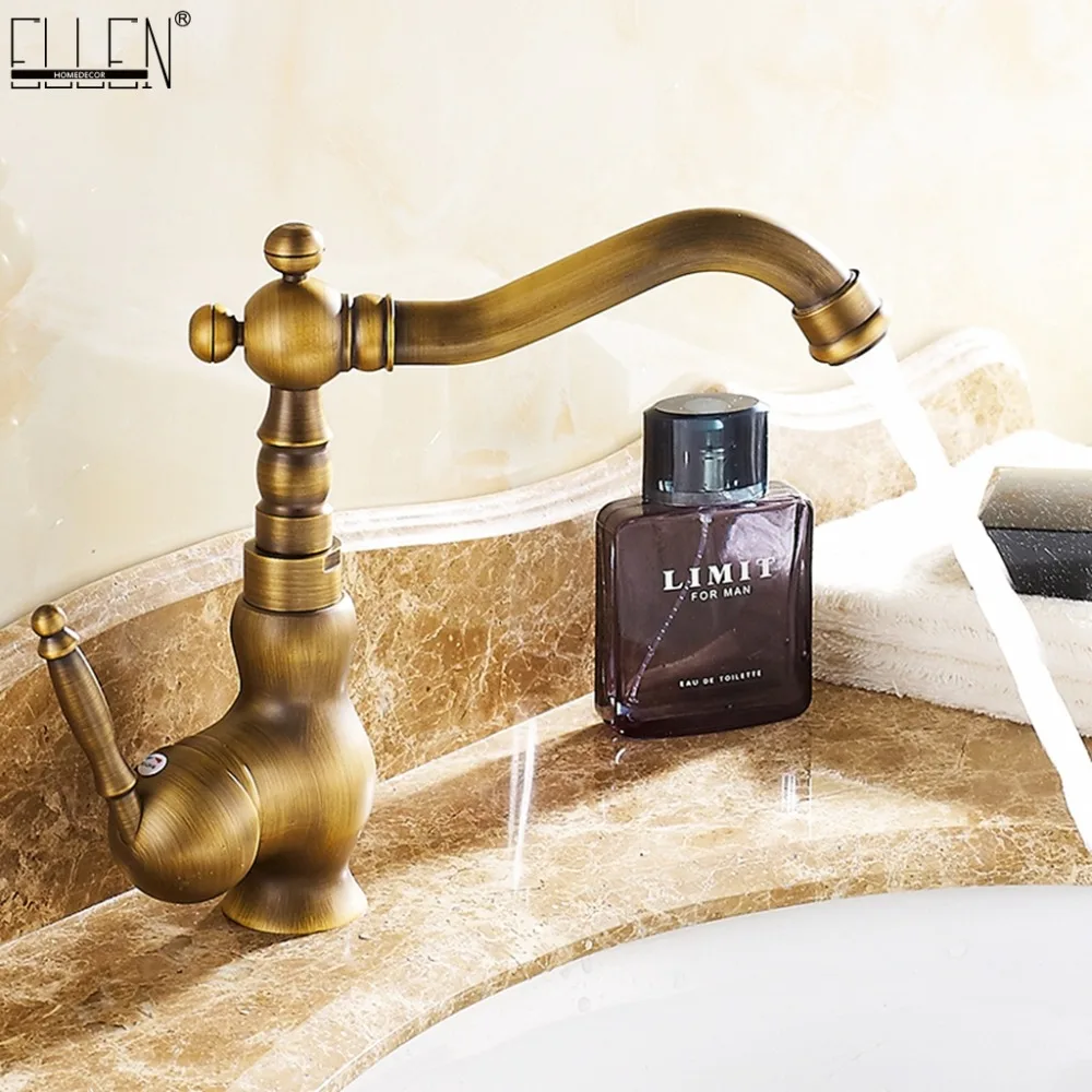 Robinet d'évier de salle de bain Antique Bronze bassin de bain grue robinet robinet d'eau mitigeur eau froide et chaude FA9100-4