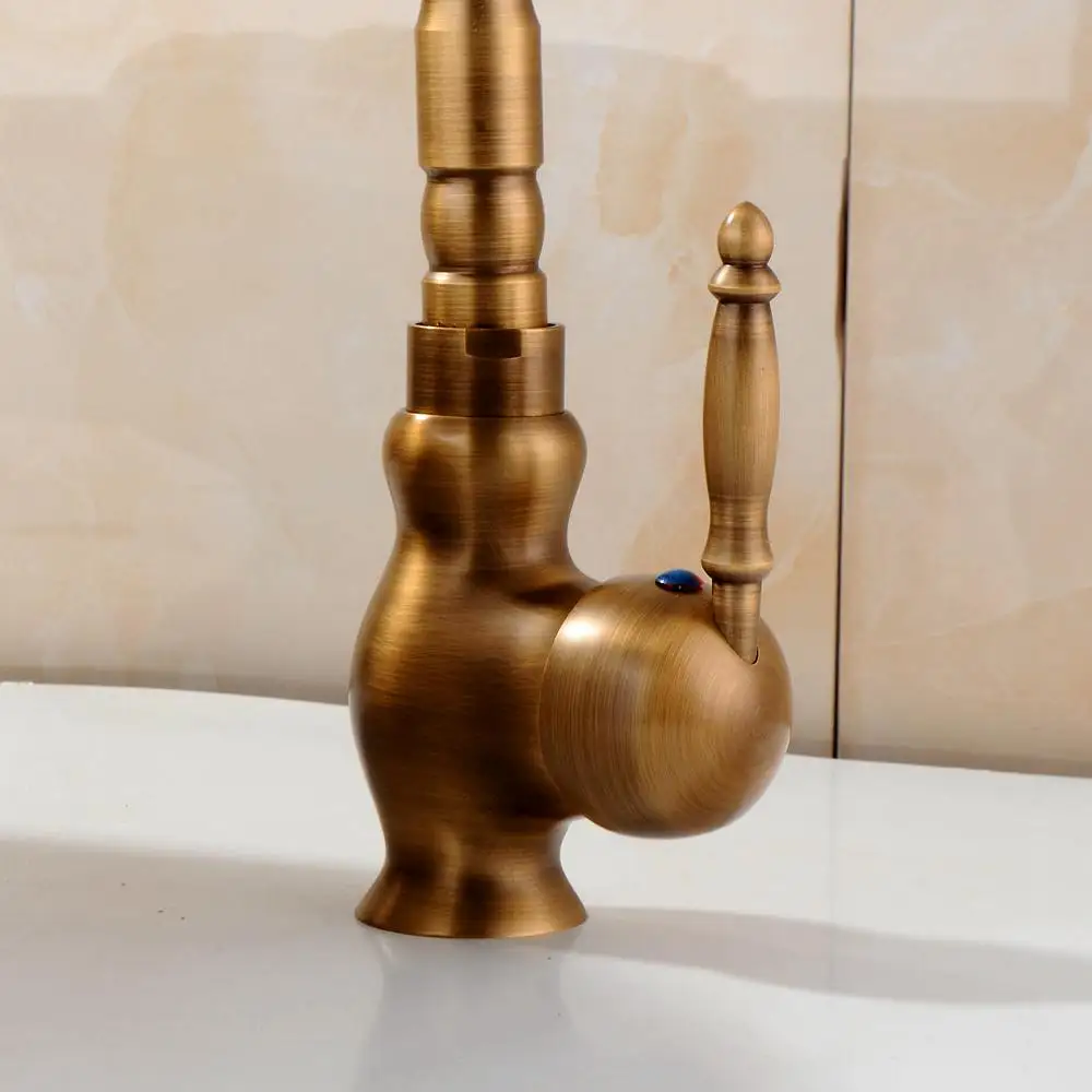 Robinet de lavabo Bronze Antique Robinet de lavabo à 360 degrés robinet d'eau à une poignée eau froide et chaude FA9100.