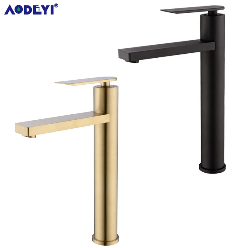 Robinet de lavabo de salle de bain mitigeur d'évier robinet d'eau du robinet en laiton massif robinet mitigeur de bassin cascade Chrome & noir & or brossé