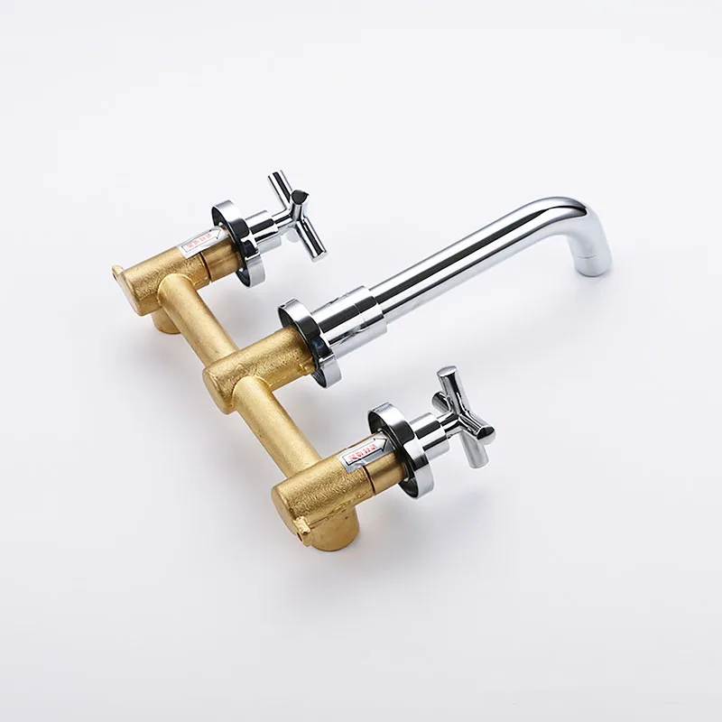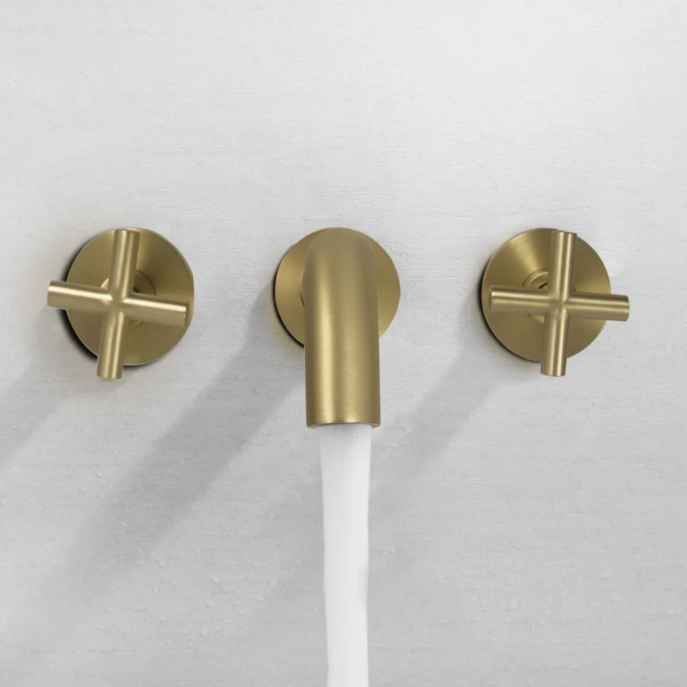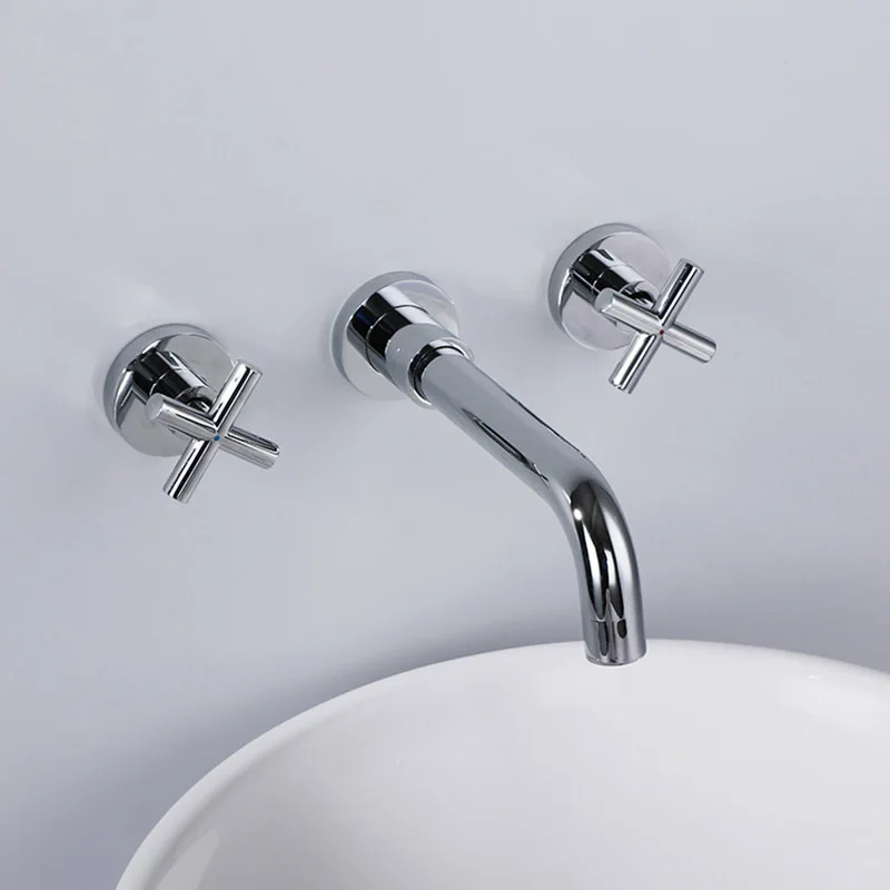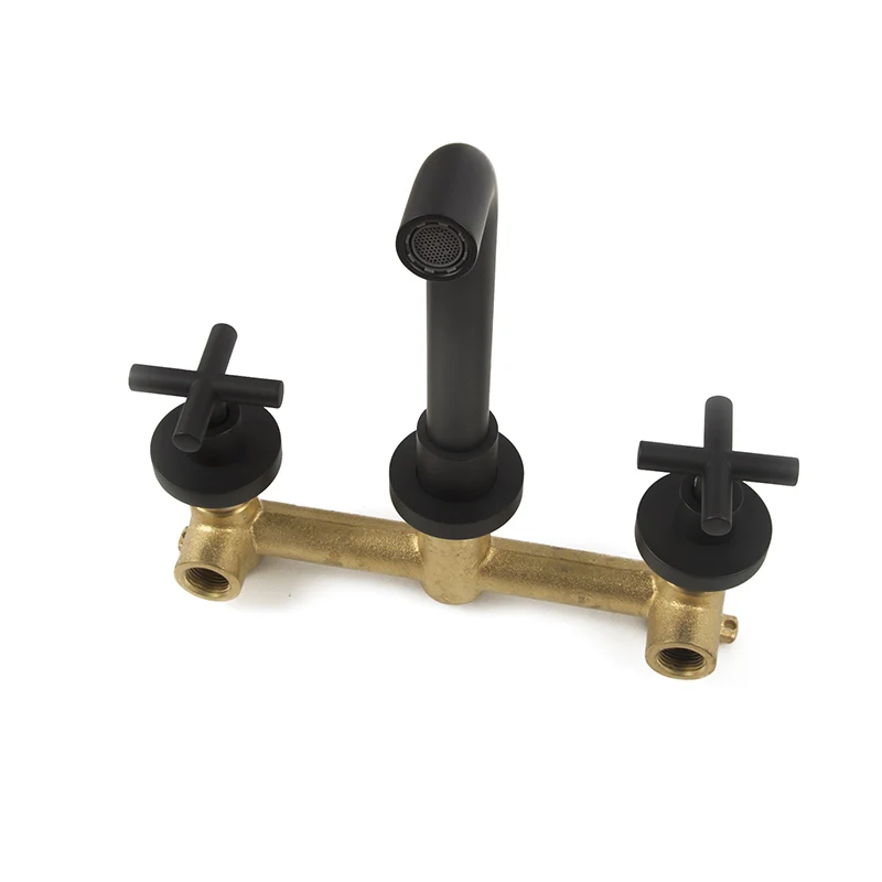 Robinet de salle de bains en laiton mural mitigeur à Double poignée noir mat et Chrome mitigeur d'eau en laiton mural rotatif à 360 degrés.