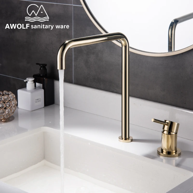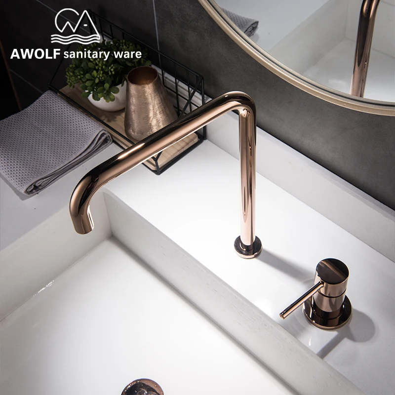 Robinet mitigeur d'eau chaude et froide en laiton massif brossé robinet de lavabo de cuisine de salle de bains robinet mitigeur d'eau chaude et froide en laiton massif brillant or brossé Rose or noir Chrome ML8049.