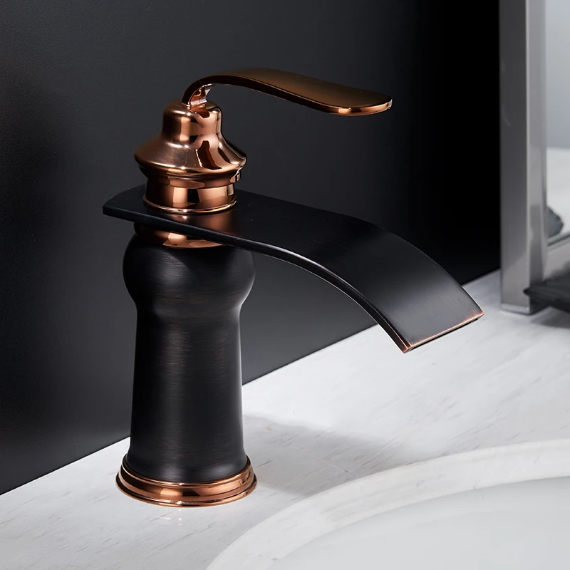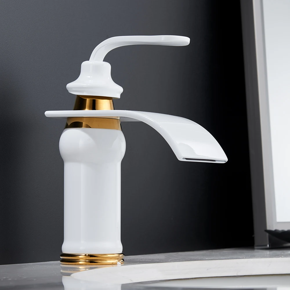 Robinets mélangeurs à trou unique mitigeurs de lavabo Style moderne robinet de salle de bains monté sur le pont cascade à la fois eau froide et chaude grue 9273.