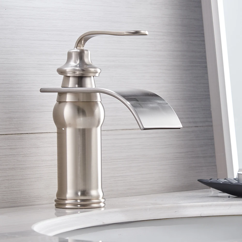 Robinets mélangeurs à trou unique mitigeurs de lavabo Style moderne robinet de salle de bains monté sur le pont cascade à la fois eau froide et chaude grue 9273