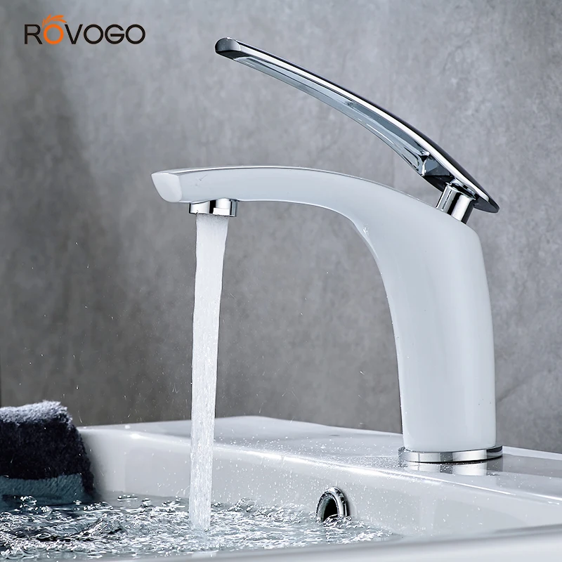 ROVOGO salle de bain vanité évier robinet blanc mitigeur lavabo robinet un trou eau bassin mitigeur en laiton massif.