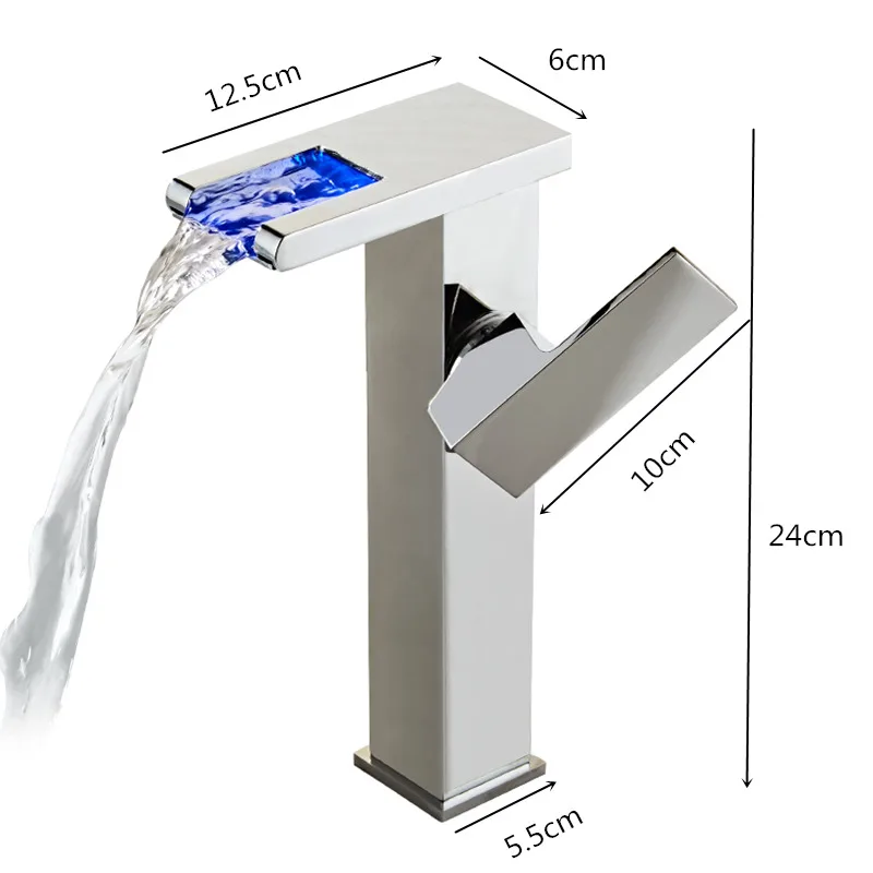 Tuqiu robinet de bassin LED salle de bain cascade robinet en laiton noir robinet de bassin. Mélangeur de salle de bain robinet mitigeur de lavabo monté sur le pont