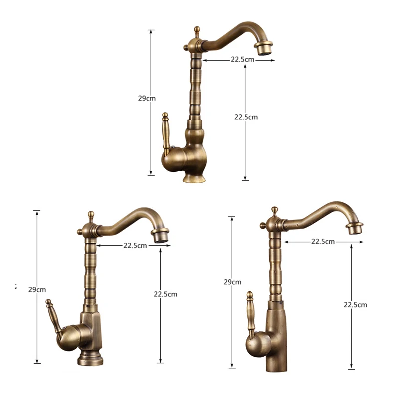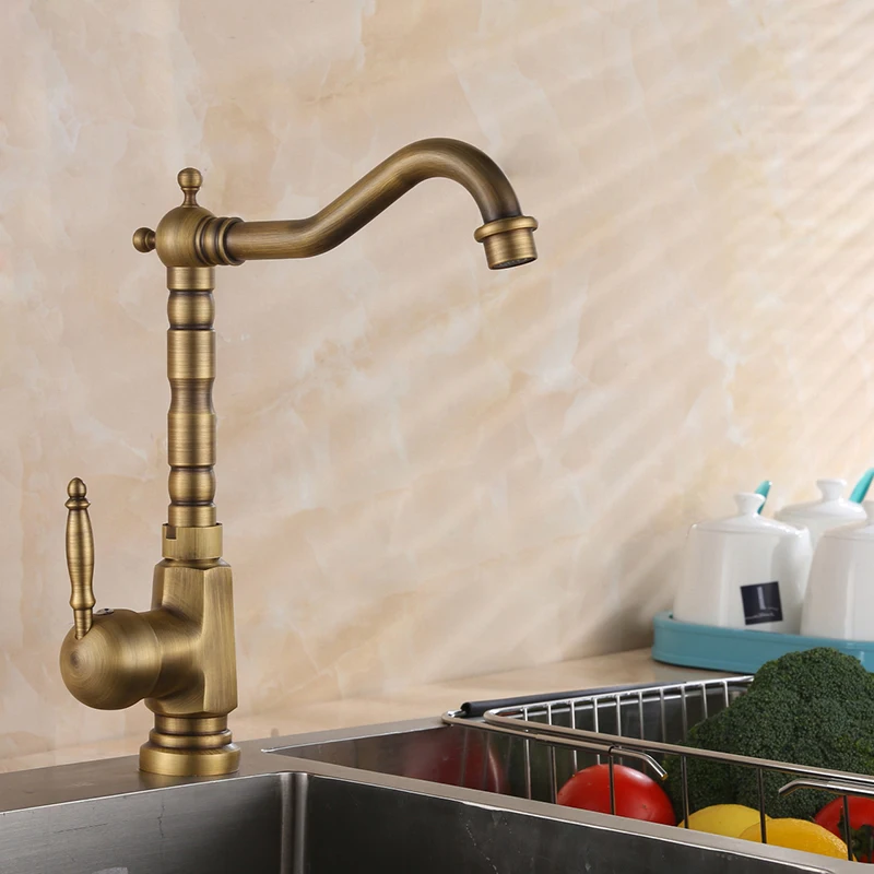 Vidric Antique laiton robinets de cuisine 360 pivotant cuivre salle de bain bassin évier mélangeur robinet grue eau chaude et froide robinet rotatif cran.