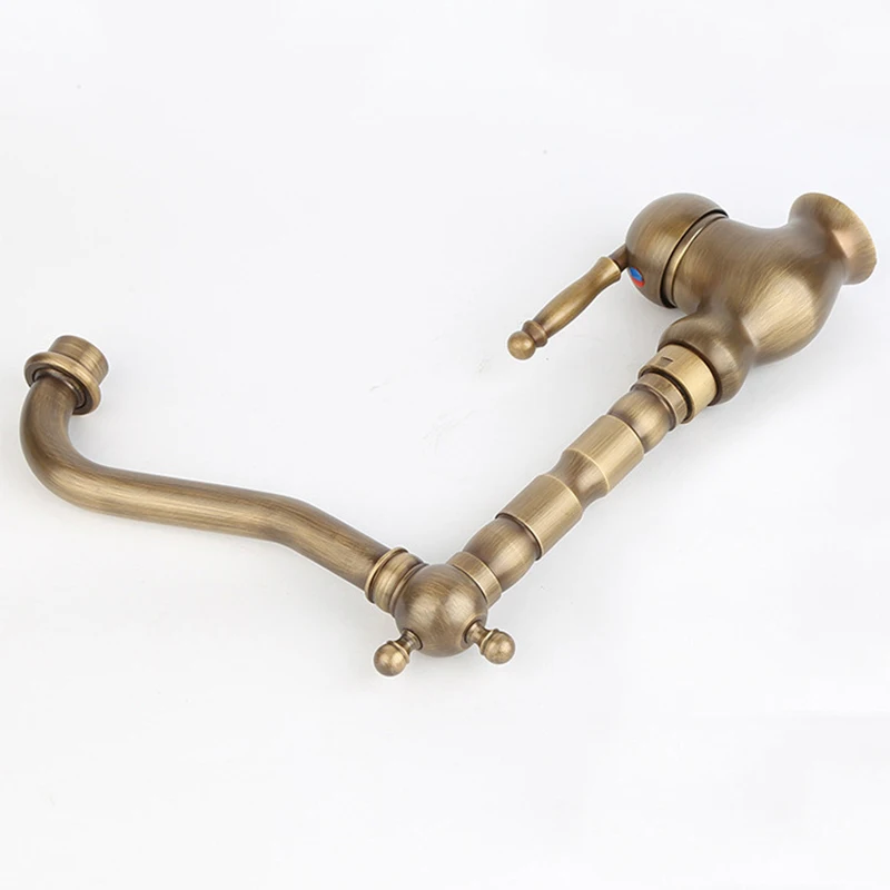 Vidric Antique laiton robinets de cuisine 360 pivotant cuivre salle de bain bassin évier mélangeur robinet grue eau chaude et froide robinet rotatif cran