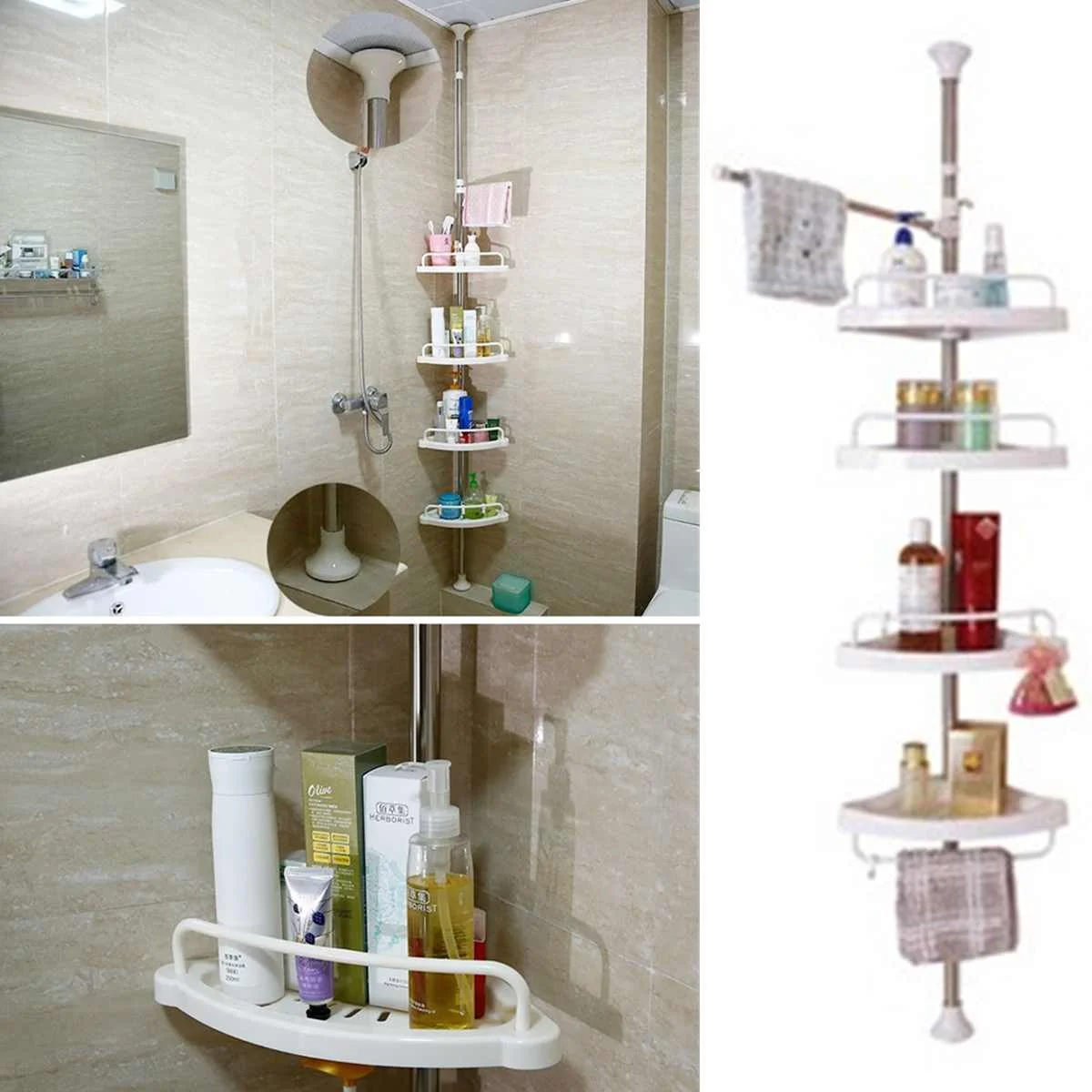 4 niveaux réglable télescopique salle de bain coin douche étagère support Caddy organisateur acier inoxydable + PP 192-310cm pôle sans rouille