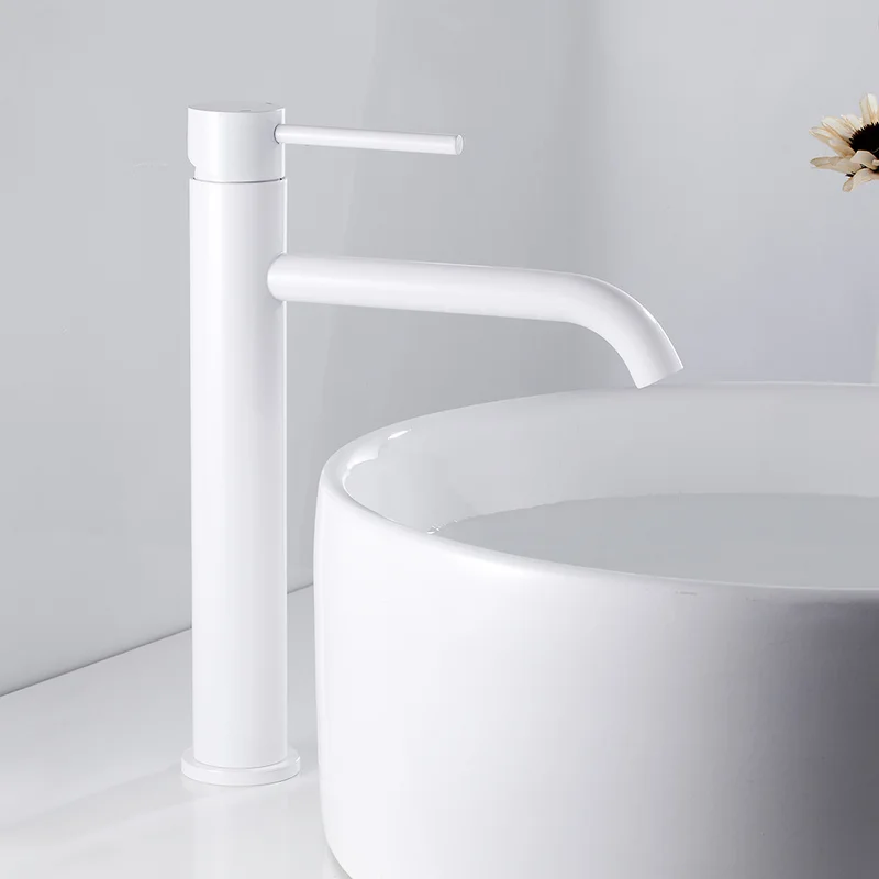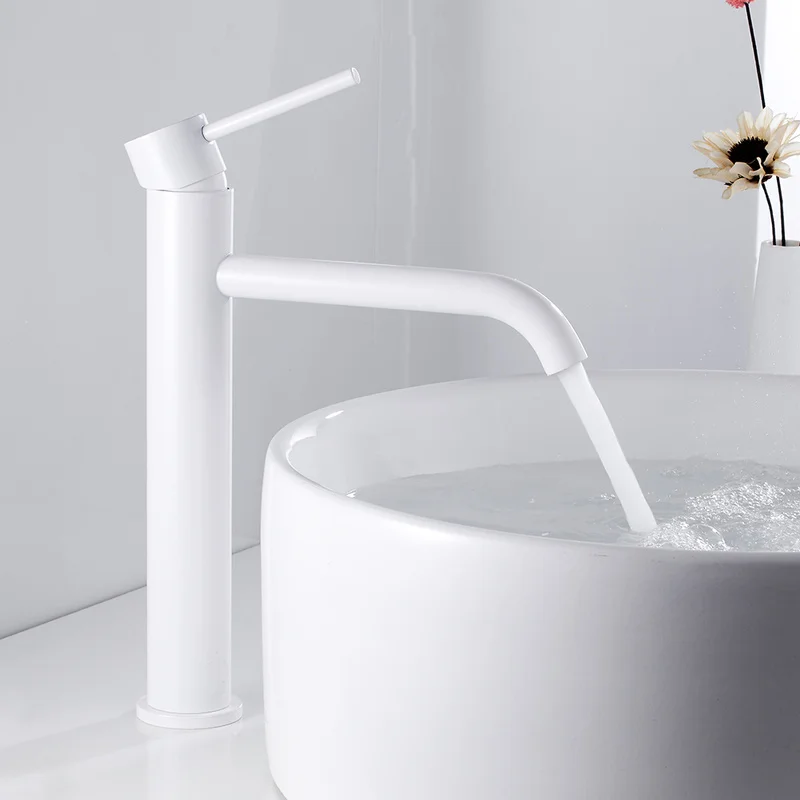 Blanc salle de bain bassin robinets lavage main visage mitigeur lavabo eau chaude et froide haute robinets robinet avec tuyau HOTBEST.