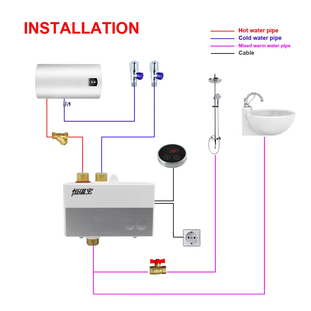 Contrôleur de mélange d'eau thermostatique Contrôleur de mélange d'eau température de l'eau tactile LCD numérique.