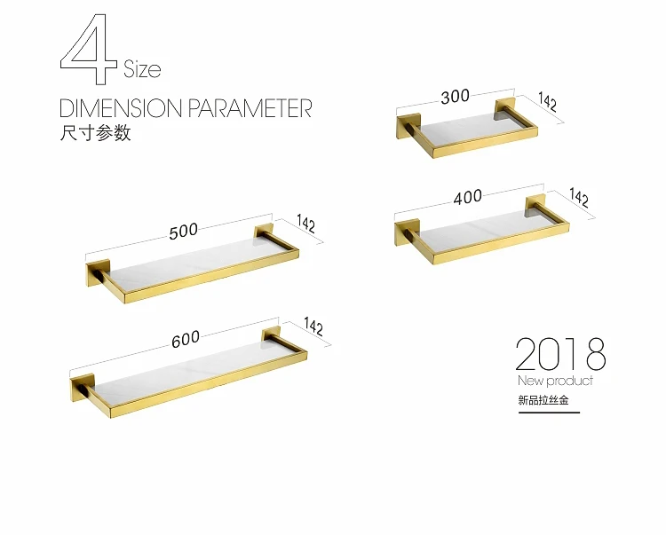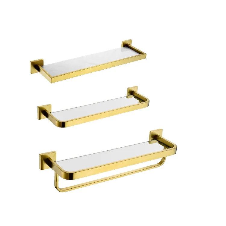 Étagère en verre de 30cm organisateur de salle de bains en acier inoxydable 304 organisateur de salle de bains coin de rangement en or brossé étagères.