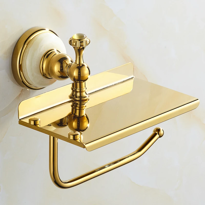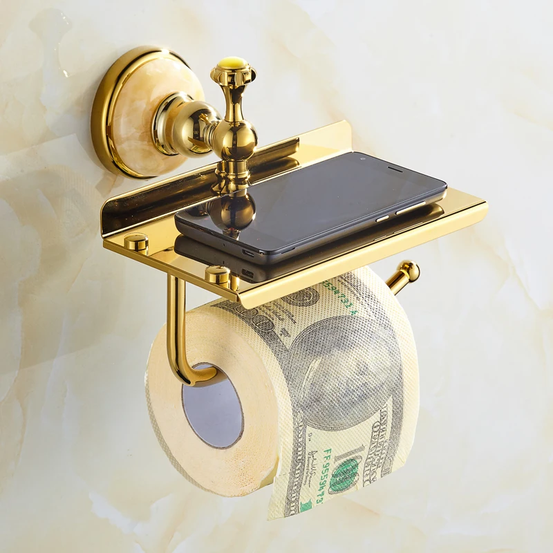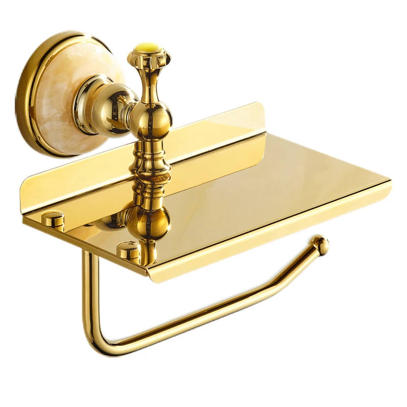 Europe antique or salle de bain produit mural or pierre porte-papier hygiénique or avec pierre crème décorer pour support pour téléphone