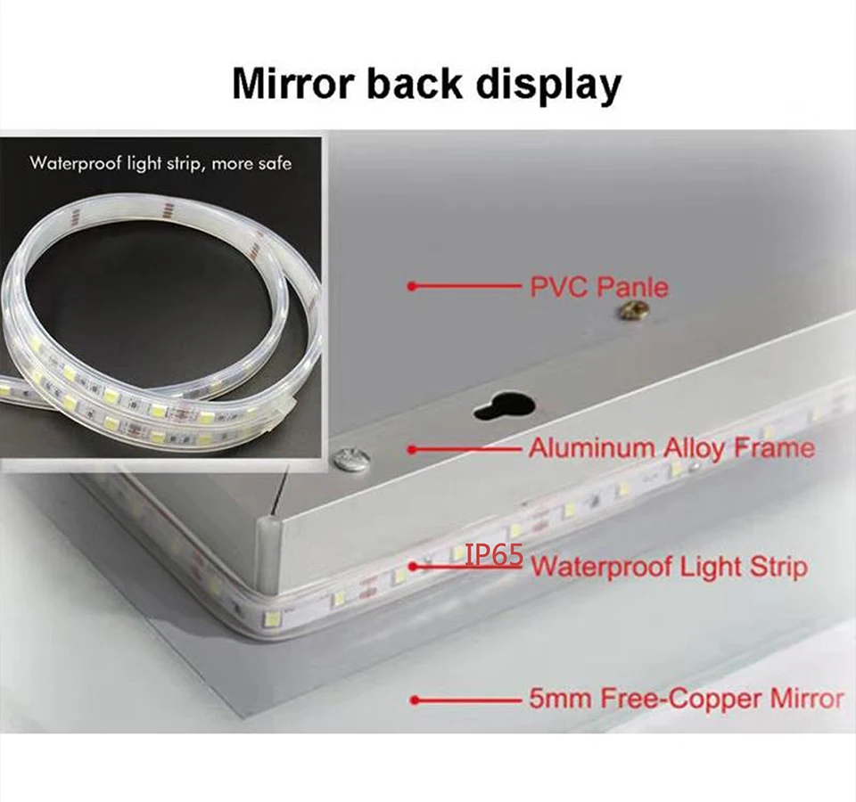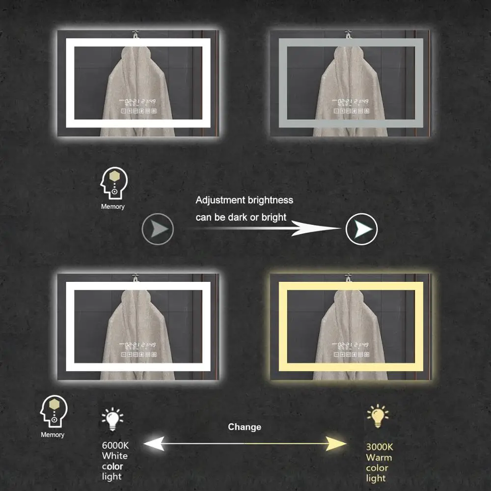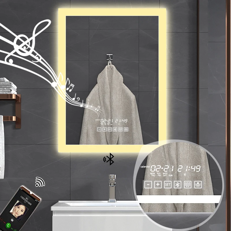 Gisha-miroir intelligent mural 2G8028 Miroir antibuée et Anti-déflagrant miroir de maquillage de salle de bains.