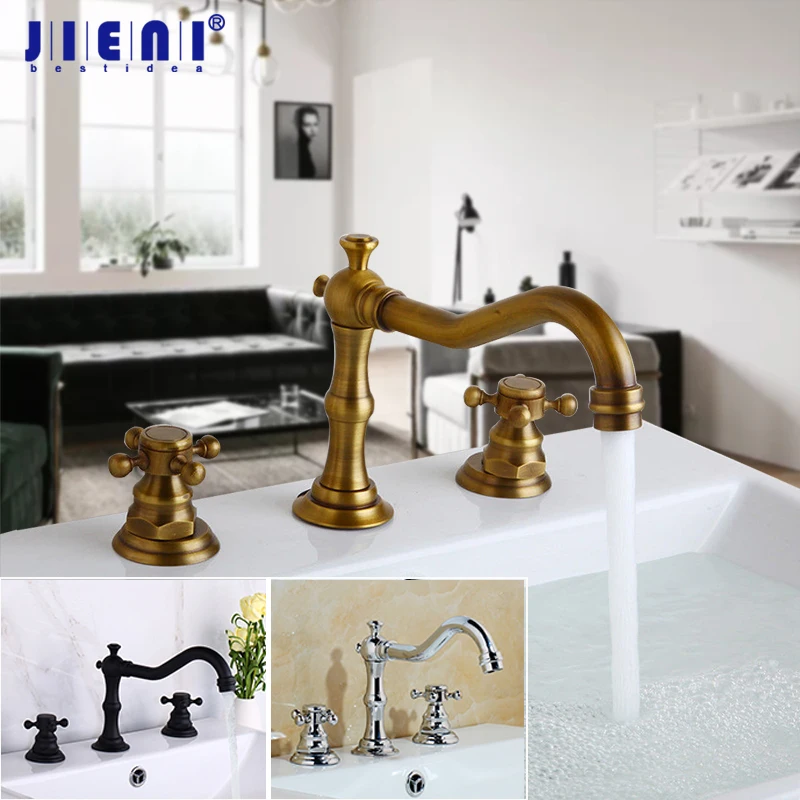 JIENI Antique laiton Chrome salle de bain cuisine bassin mélangeur robinet évier robinet 2 poignées 3 pièces doré salle de bain bassin robinet baignoire robinet