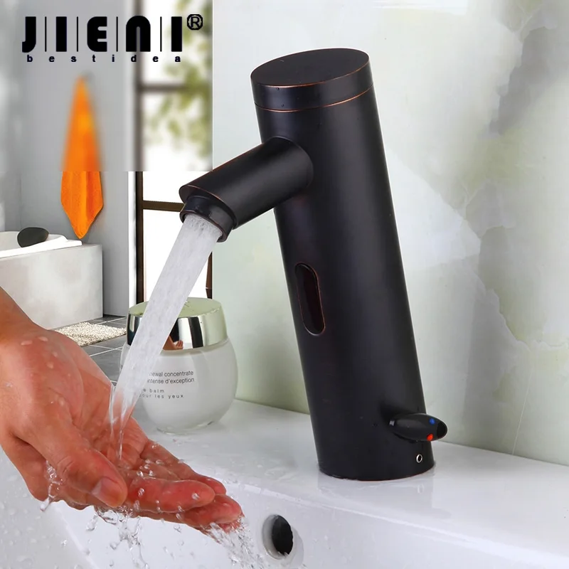 JIENI noir bassin robinet automatique tactile capteur robinets salle de bain en laiton évier Chrome robinets mélangeur et robinet mélangeur d'eau tactile libre.