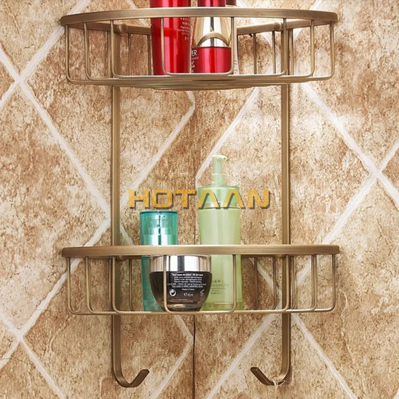 Livraison gratuite mural Antique finition en laiton salle de bain douche shampooing étagère porte-panier mode Double couche YT7006