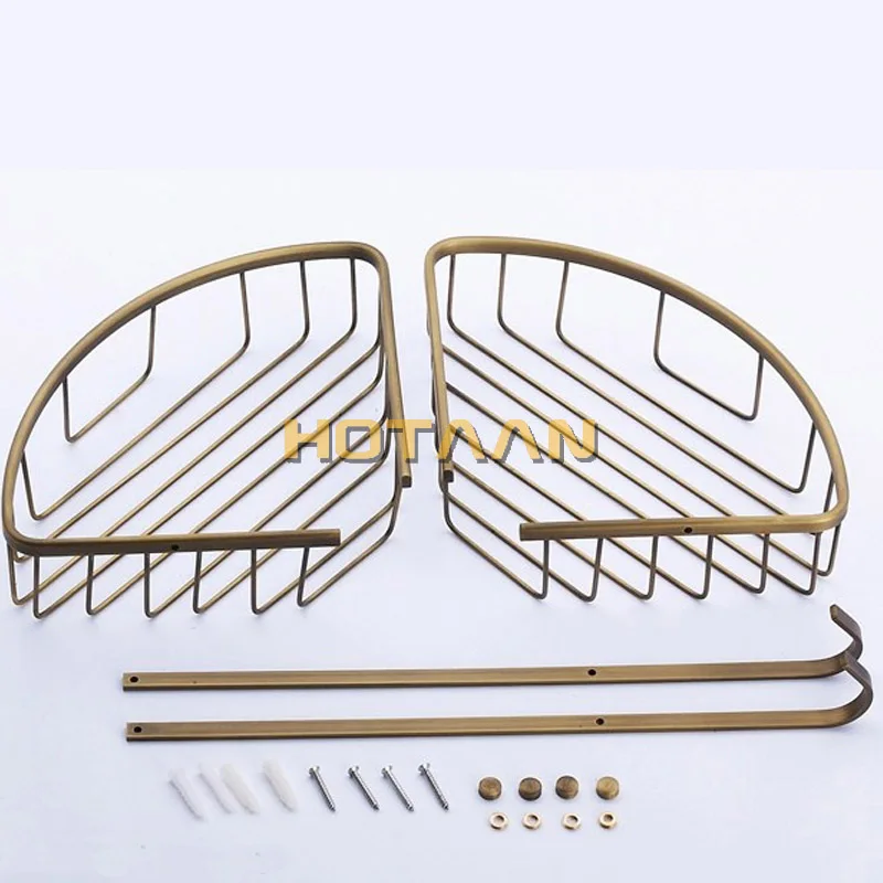 Livraison gratuite mural Antique finition en laiton salle de bain douche shampooing étagère porte-panier mode Double couche YT7006.