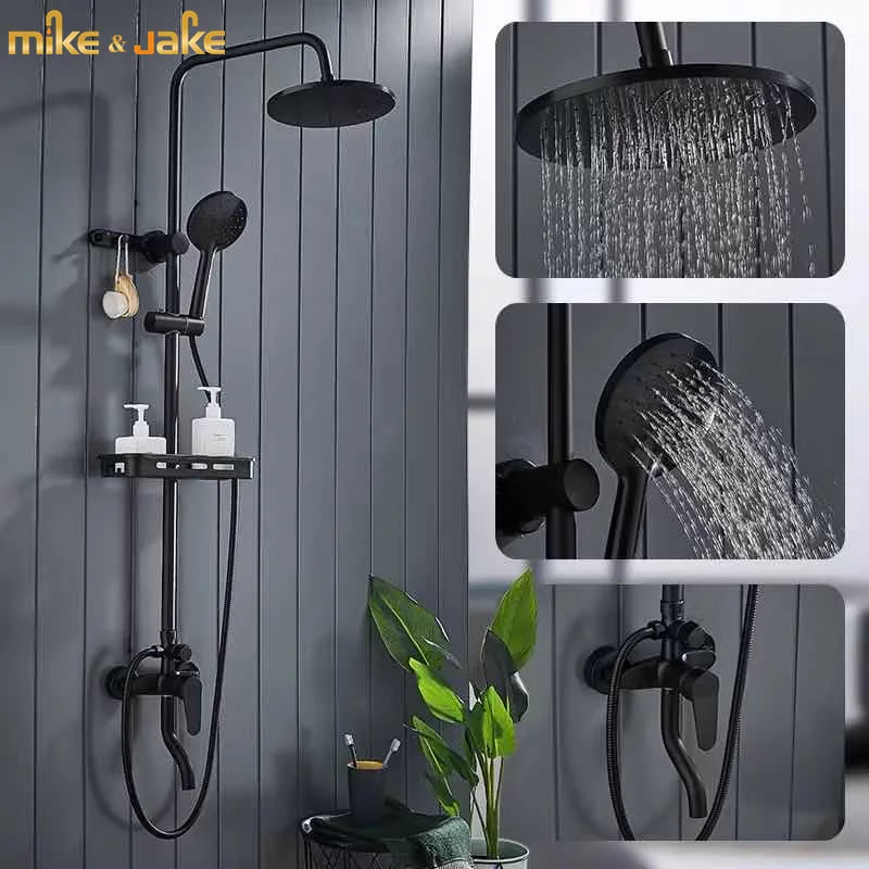 Luxe mat noir ensemble de douche pluie douche chaude et froide baignoire douche mélangeur ensemble bain douche bidet robinet