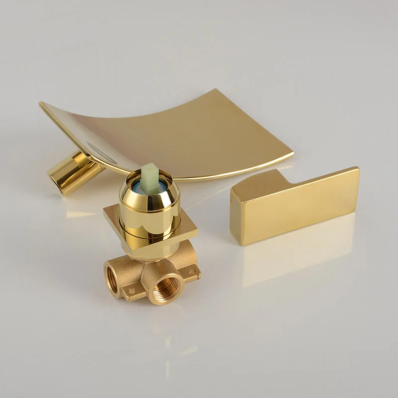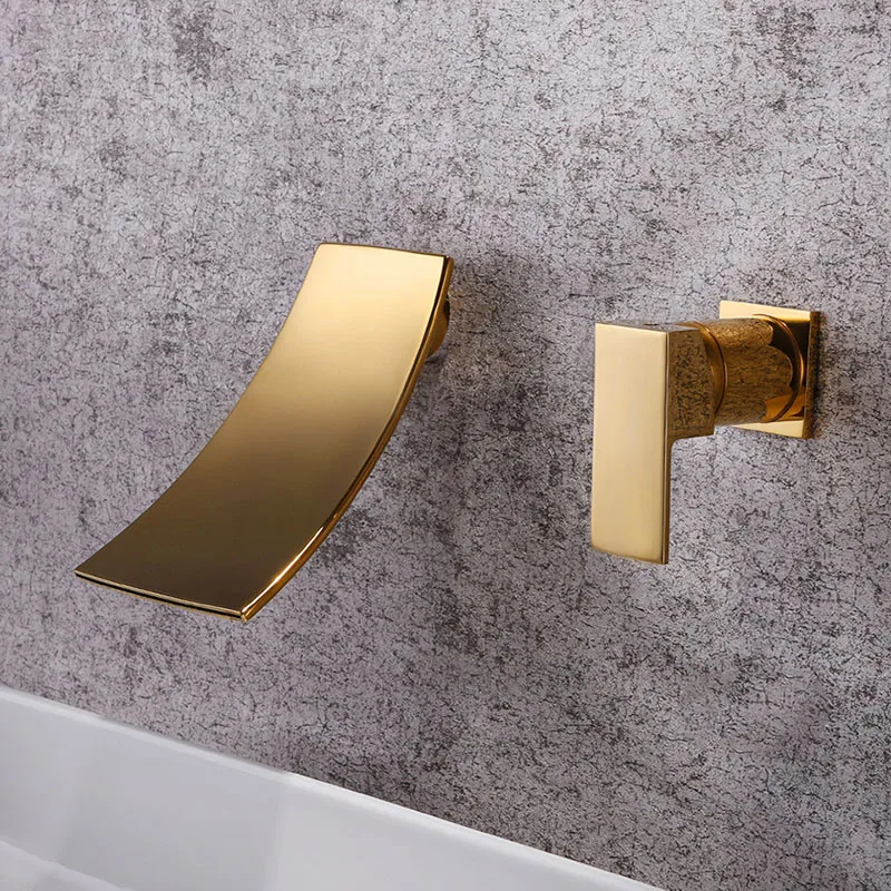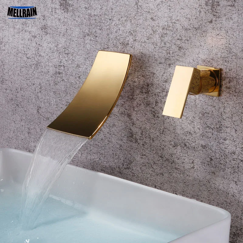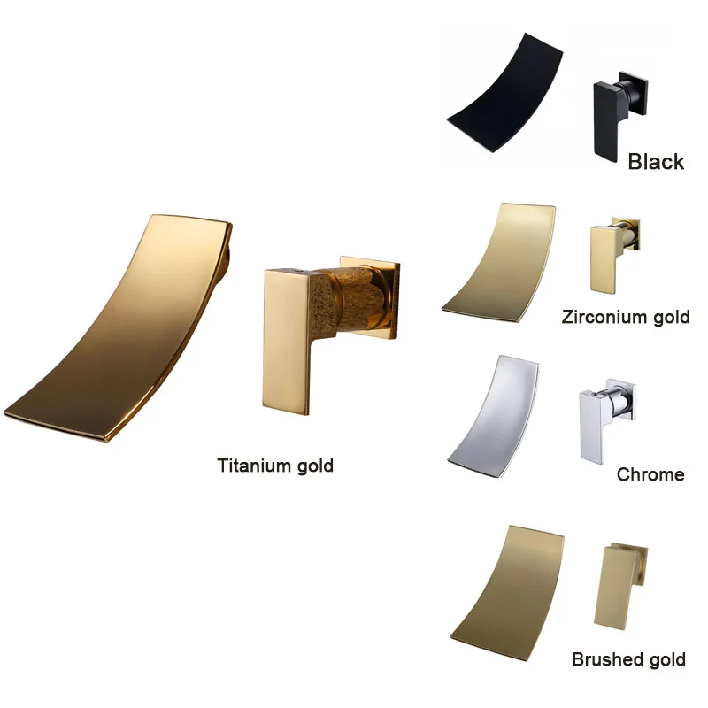 Mitigeur d'eau chaude et froide de lavabo robinet de salle de bains séparé or et noir montage mural de Style cascade robinet chromé.