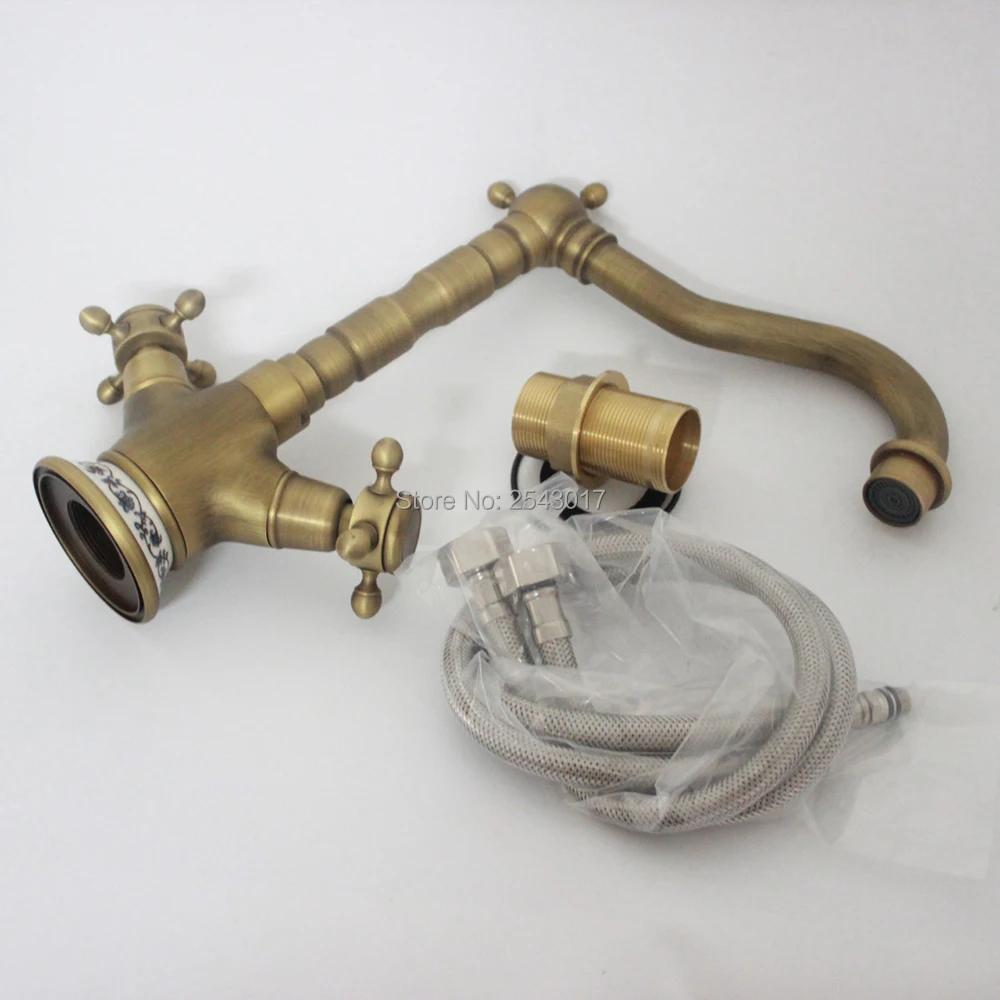 Mitigeur de lavabo en laiton Antique robinet de salle de bains mitigeur de lavabo pivotant sur le pont Base en céramique robinets de lavabo ZR132